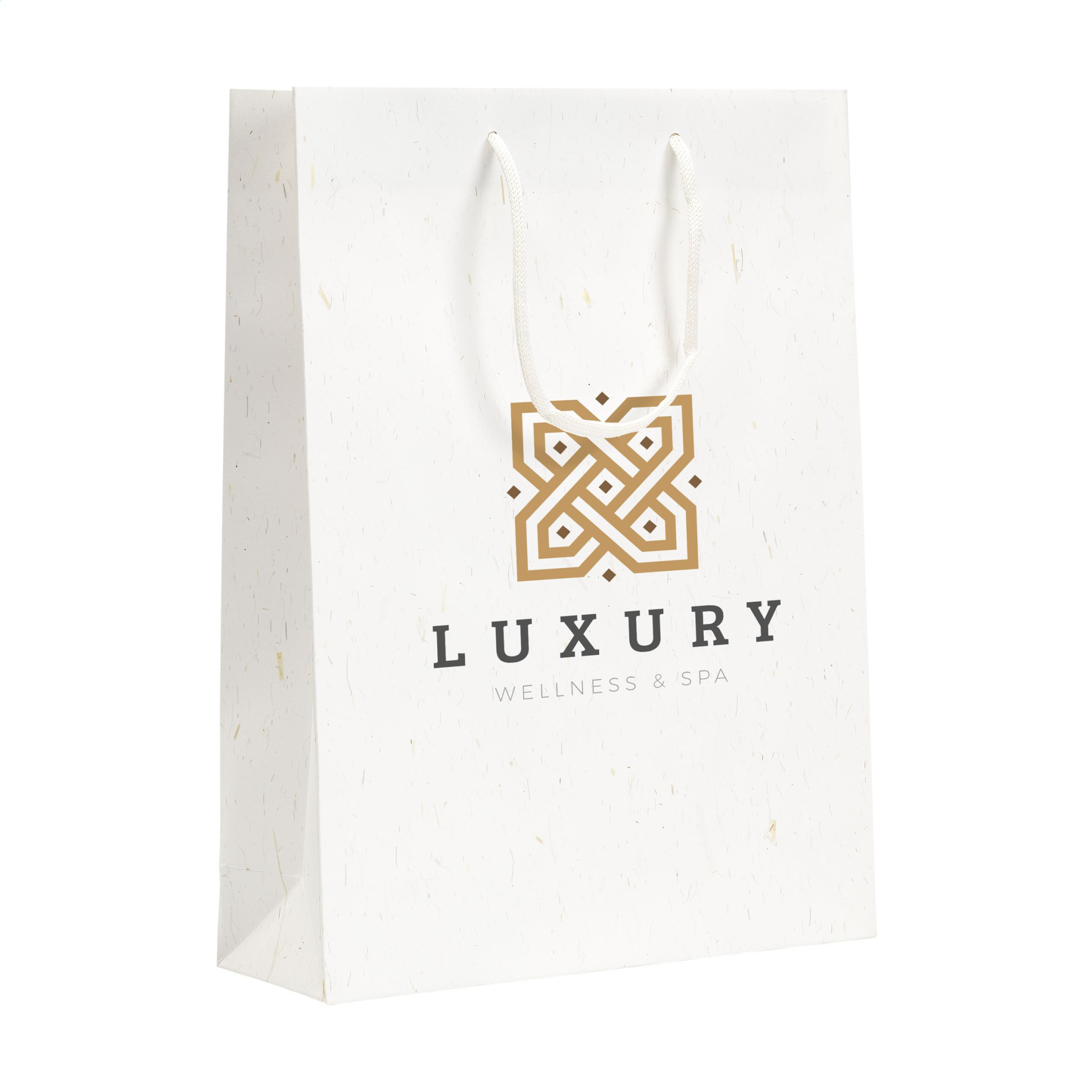 Vau! Tugev ECO-paberist kingikott (suurus L), mis on valmistatud põhukiududega taaskasutatud paberist (180 g/m²). Tänu looduslike kiudude kasutamisele on iga kott unikaalne ja paberil on näha ebatasasusi. See annab tootele kauni loomuliku välimuse. Igal kotil on kaks lühikest, paberist kootud kandeaasa, volditud põhi ja külgvolt. Sobib igasugusteks reklaamieesmärkideks. Selle koti tootmiseks puid maha ei võeta.