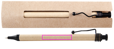 Sinise tindiga pastapliiats on valmistatud taaskasutatud papist, gofreeritud metallklambri ja plastikust otsaga, pakendatud pappkarpi. Trükime teie logo klipi alla.
