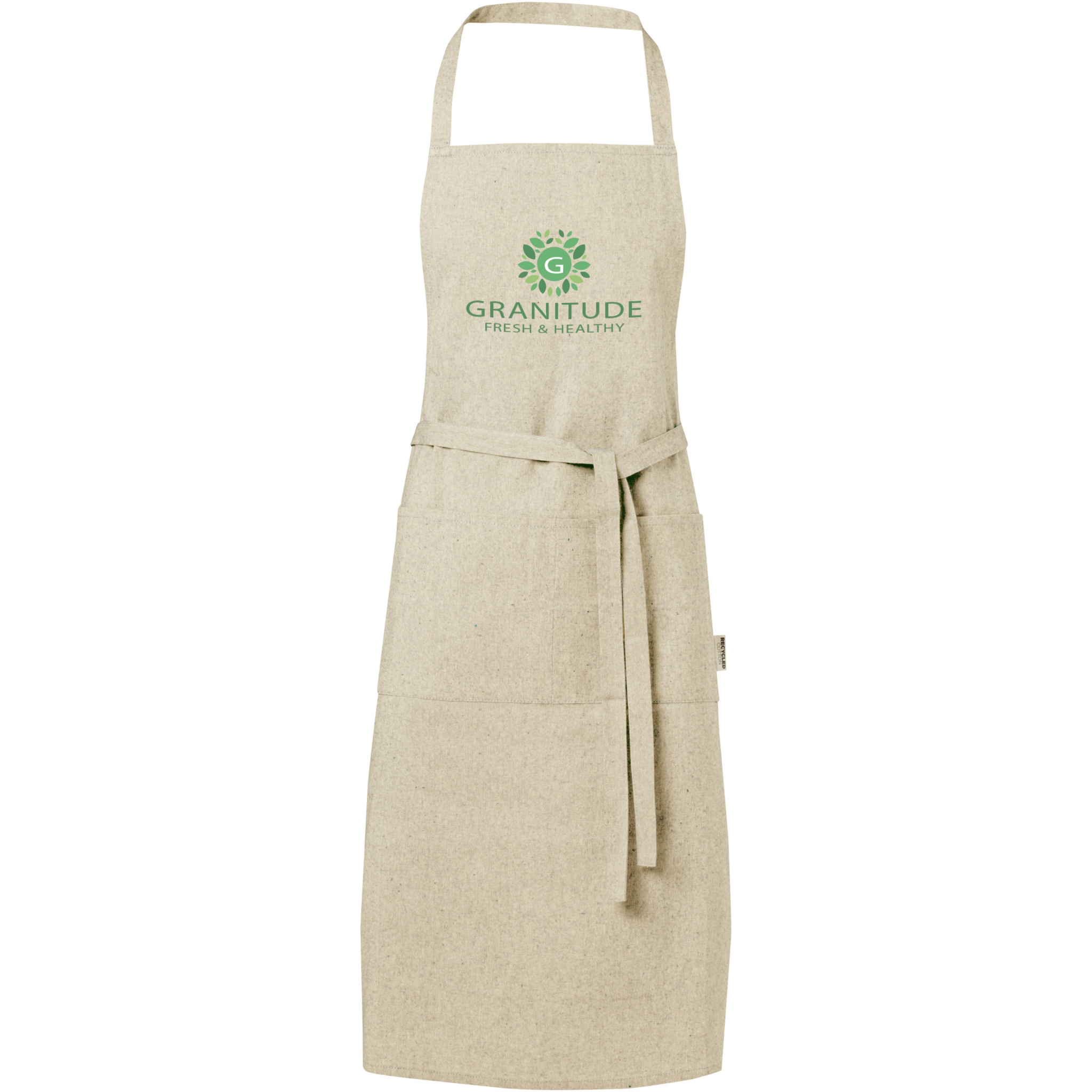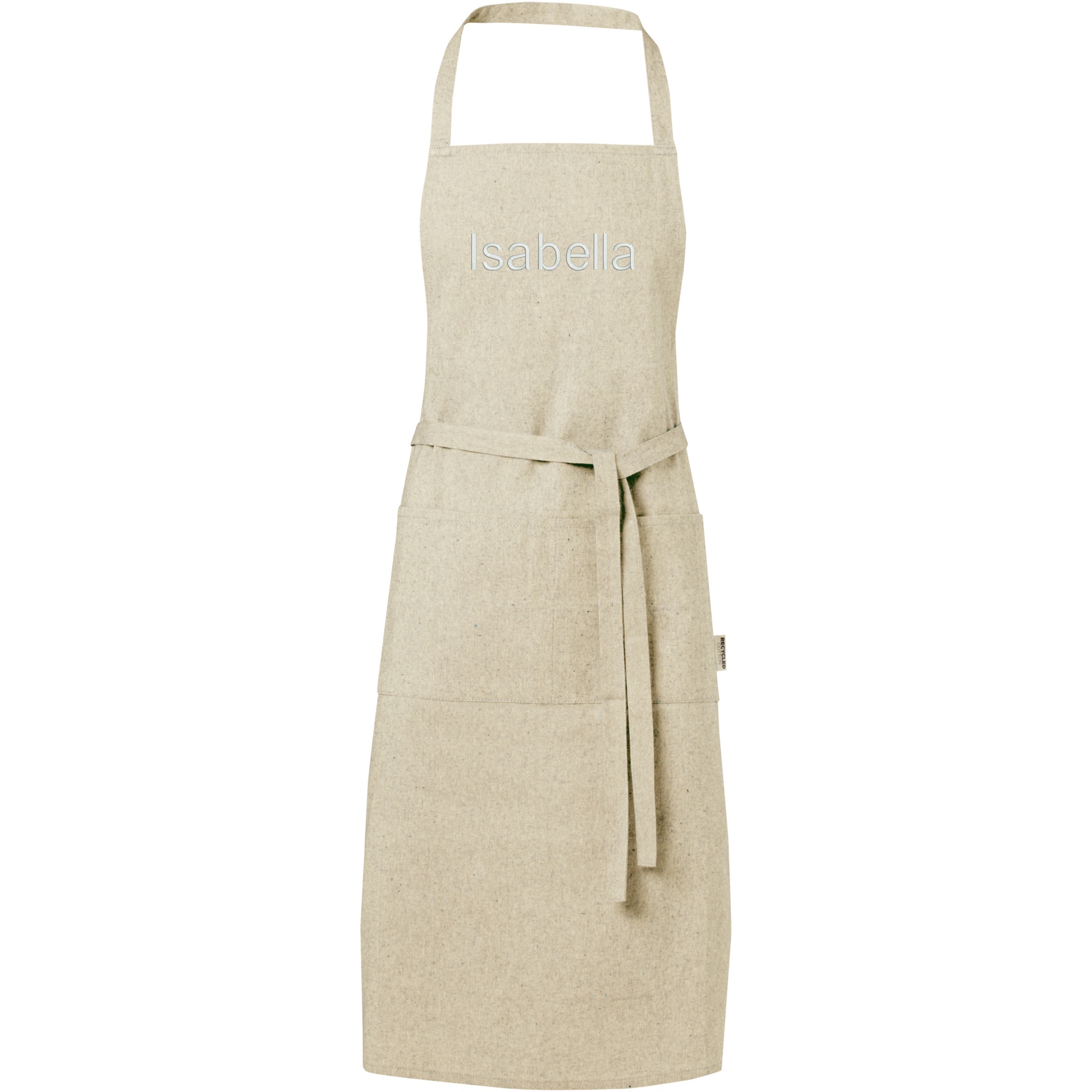 Põll 200 g/m² taaskasutatud puuvillasest polüestri segust. Sellel on 2 kõrvuti asetsevat taskut, mille kombineeritud suurus on 45 x 20 cm, ja 1-meetrine lipsukinnis. Taaskasutatud puuvilla toodetakse tarbimiseelsetest jäätmetest, mis tekivad tekstiilitehastes lõikamisprotsessi käigus. Taaskasutatud puuvilla olemuse tõttu võib esineda väga väikest värvimuutust. See funktsioon lisab selgelt autentsema välimuse. Kaelarihma pikkus: 55 cm.