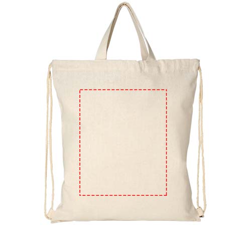 Pingutusnööriga kott on valmistatud 210 g/m² taaskasutatud puuvillasest polüestri segust. Taaskasutatud puuvilla toodetakse tarbimiseelsetest jäätmetest, mis tekivad tekstiilitehastes lõikamisprotsessi käigus. Suur puuvillase nööriga kinnine põhisahtel. Sellel on kaks käepidet, mille kõrgus on 14 cm. Vastupidavus kuni 5 kg kaalule. Tegeliku toote värvis võib tootmisprotsessi iseloomu tõttu esineda väikseid erinevusi.