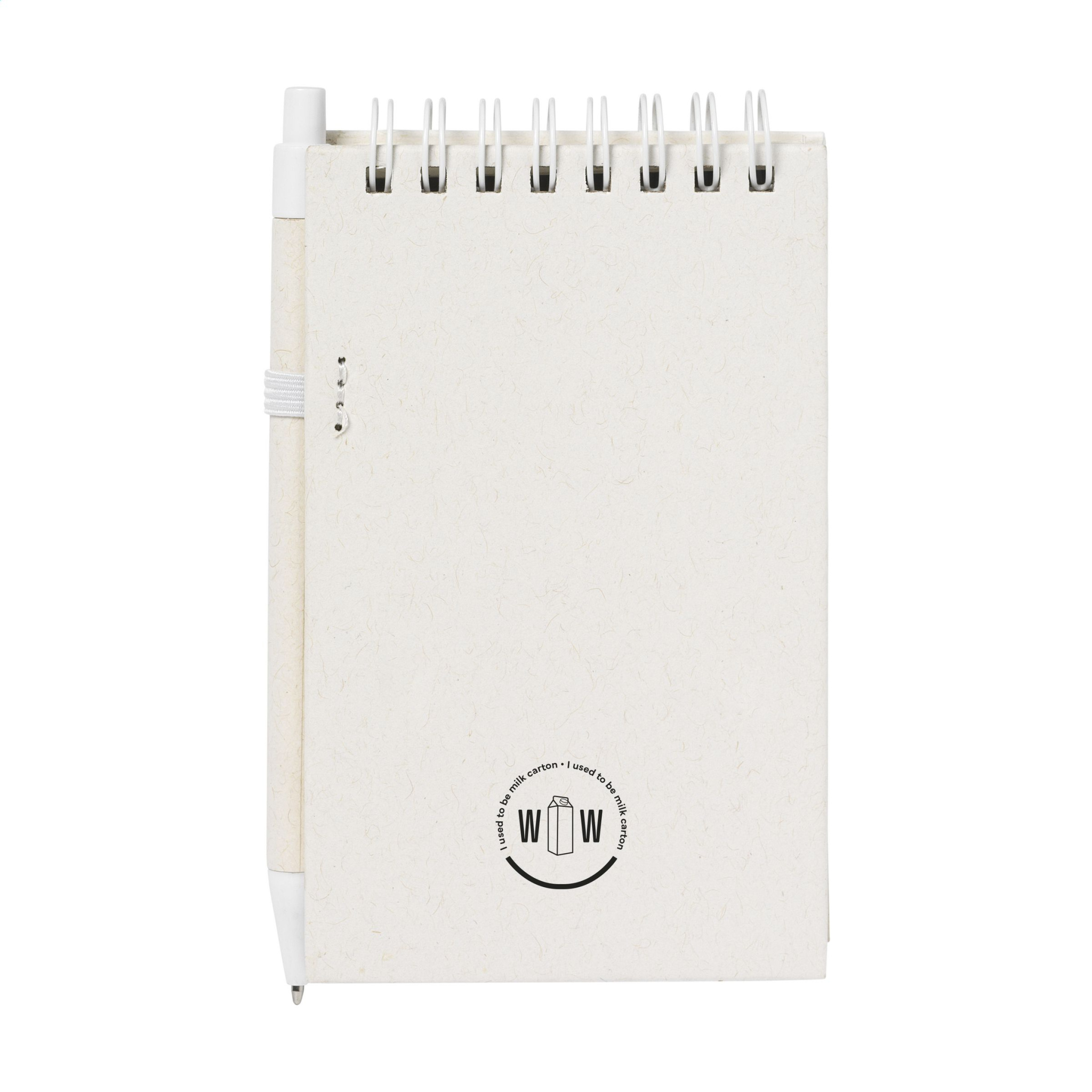Vau! A6 märkmik, mille kaas ja paber on valmistatud taaskasutatud piimapakkide (kuni 70%) ja 30% taaskasutatud paberi jääkpaberist. Märkmik on rõngasköites ja sellel on u. 70 lehte/140 lehekülge kreemikat, taaskasutatud, joonega paberit (80 gsm). Kaasas on sobiv sinise kirjaga pastapliiats, mis on valmistatud taaskasutatud piimapakkidest. Taaskasutatud materjalide kasutamise tõttu võivad materjalil olla näha väikesed vead. See annab tootele ainulaadse välimuse.