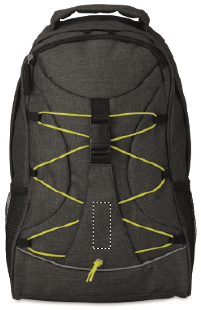 600D 2-toonist polüestrist seljakott, millel on värviline kontrastne pealispind ja helendav esipaneelil olev tumedas nööris. Võrktaskud mõlemal küljel.