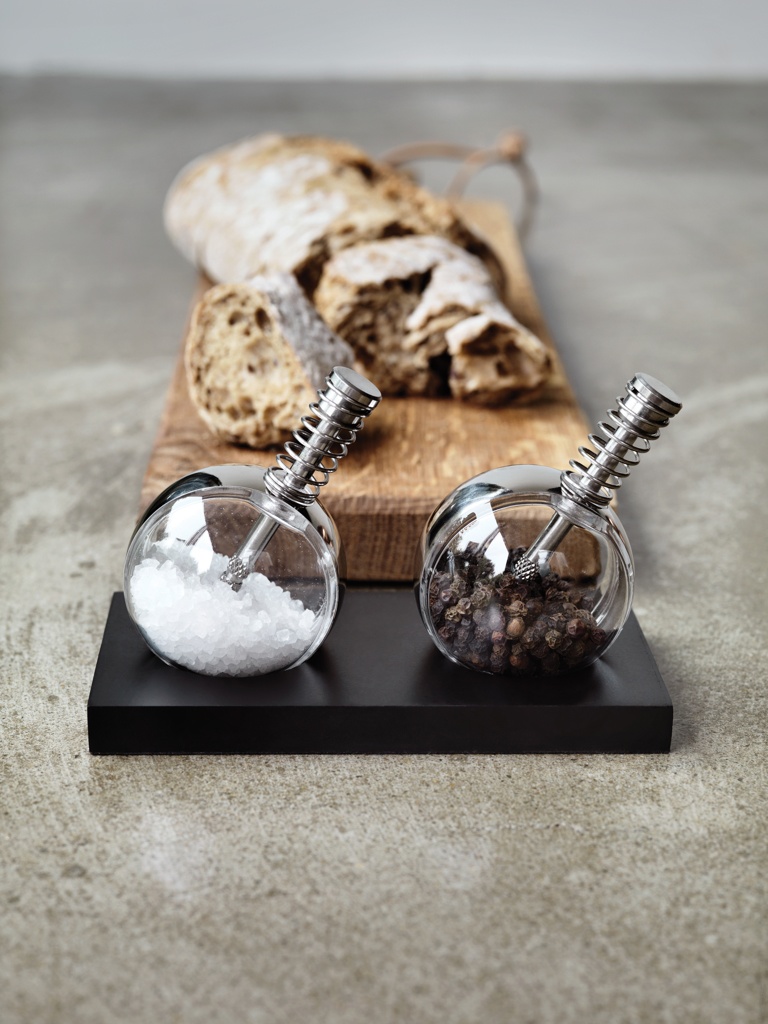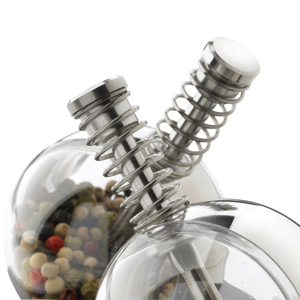 Planet on stiilne pipra- ja soolakomplekt, mille igas jahvatusmasinas on ainulaadne vedrujõuline disain, mis võimaldab mugavat ühe käega kasutamist. Kuna maakerad on läbipaistvad, on meresoola ja pipra taset lihtne näha. Registreeritud disain®