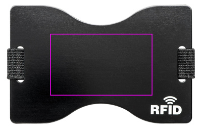 Alumiiniumist kaardihoidja RFID (Radio Frequence Identification) kaitsega nt. krediitkaardid, pangakaardid, isikutunnistus jne. Korpusele on laseritud logo.