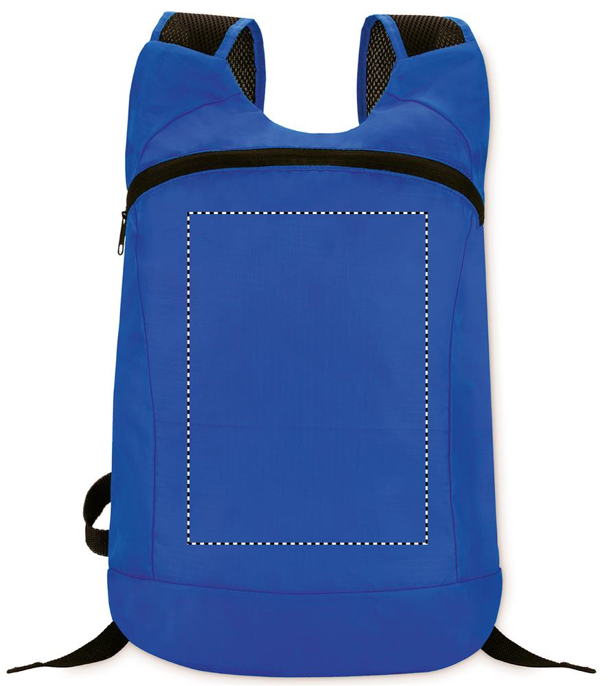 Ripstop polüestrist kokkupandav spordiseljakott lukuga eesmise ava, võrgust õlarihma ja eemaldatava kotiga.