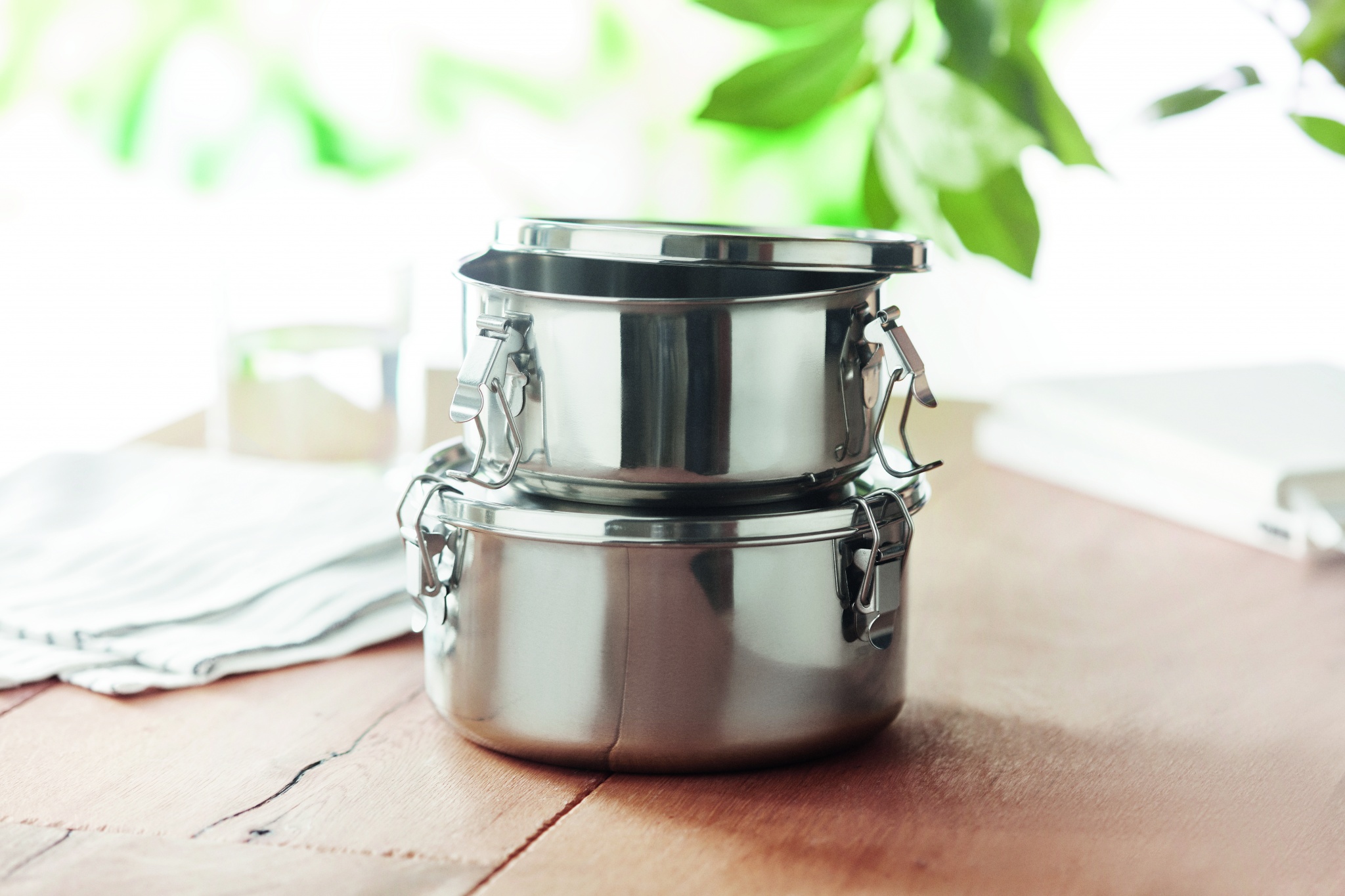Roostevabast terasest lõunakarbid või hoiukomplekt tugevate ja kindlate küljepandlaga. Mahutavus: 450 ml. ja 900 ml.