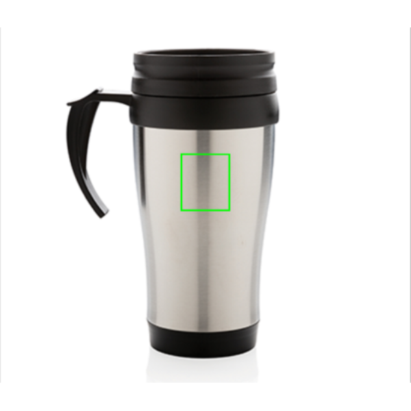 350 ml roostevabast terasest väljast ja PP seest kruus kaane ja põhjaga musta värvi.