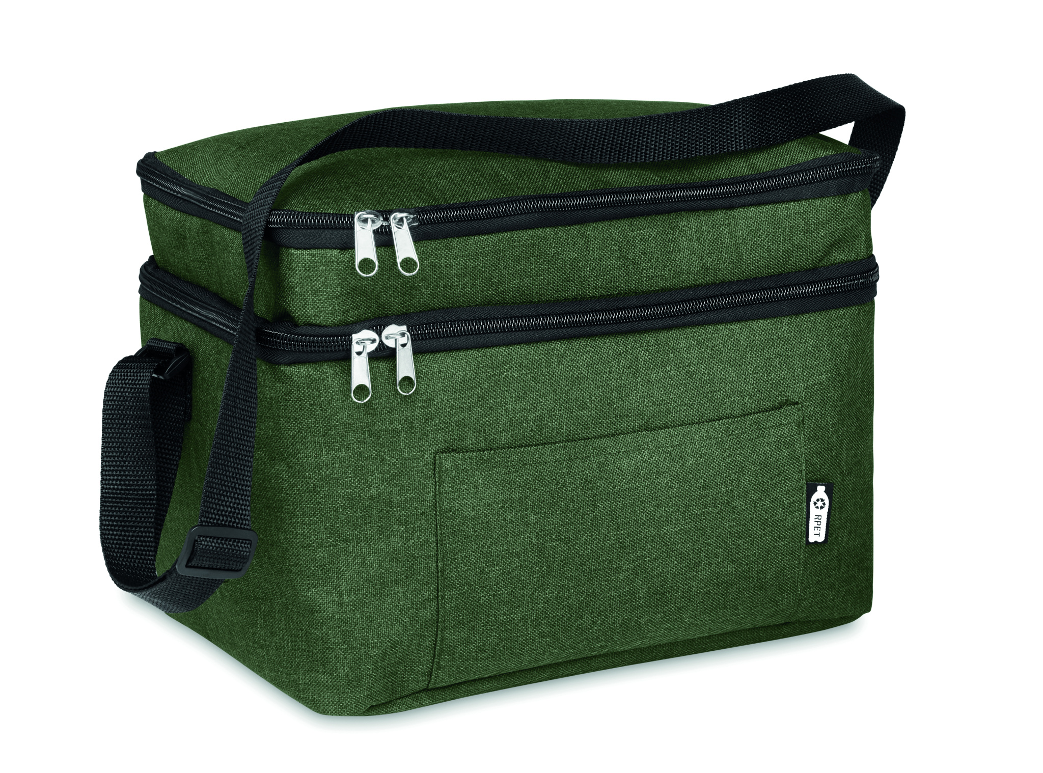 2-tooniline 600D RPET 2 sektsiooni ja PEVA voodriga külmakott. Reguleeritav õlarihm ja esitasku. Isolatsioonimaterjal: 0,15mm PEVA + 3mm vaht.