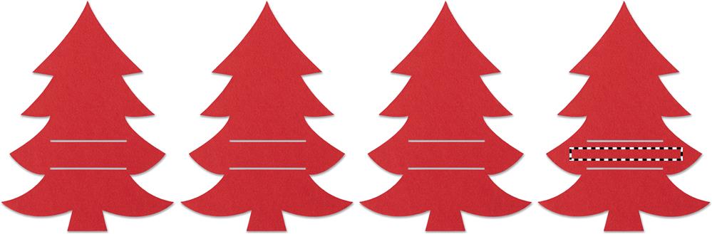 4-st jõulupuukujulises RPET-vildist söögiriistahoidjast koosnev komplekt, pakitud jõukarbis.