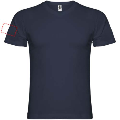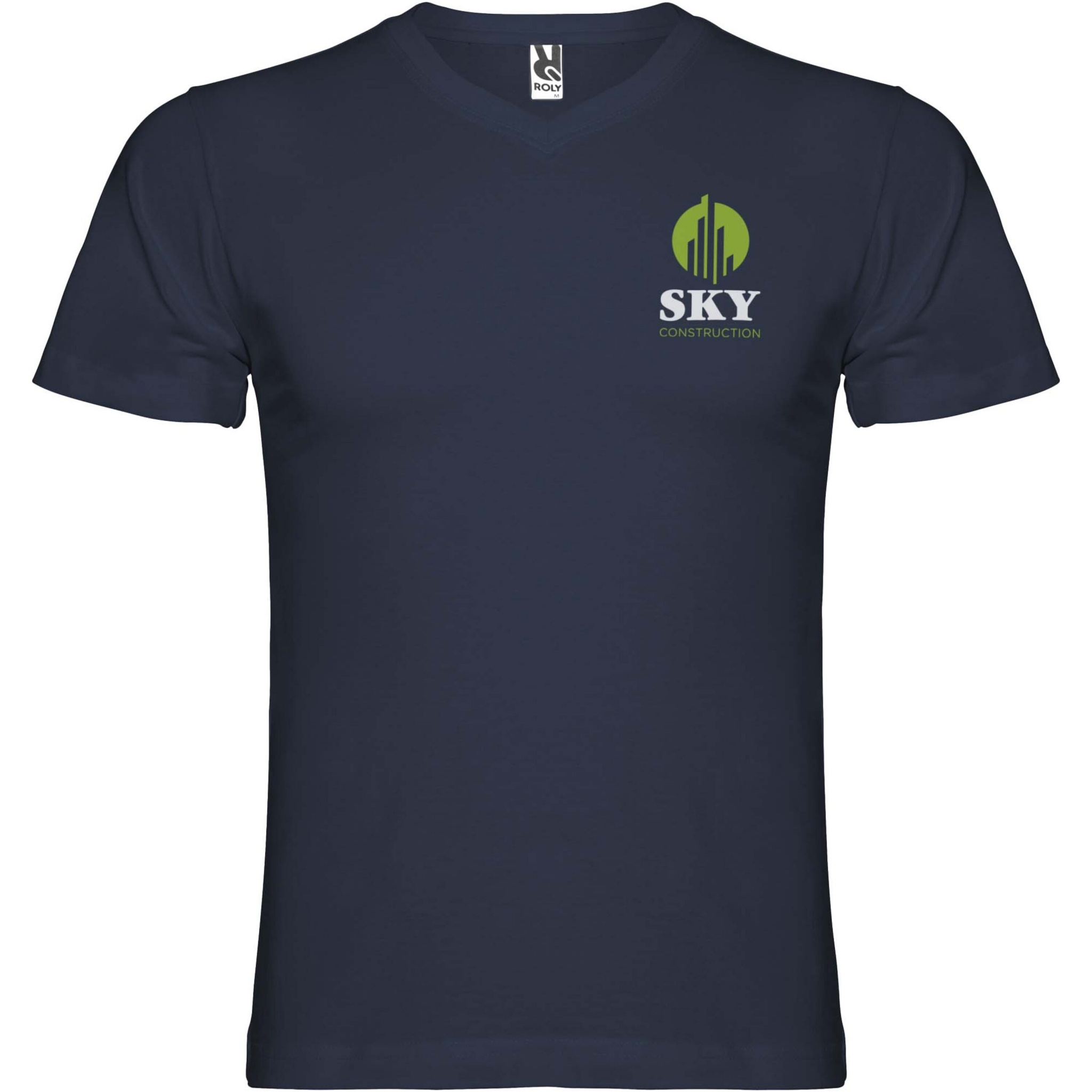 Torujas lühikeste varrukatega t-särk 2-kihilise v-kaelusega. Tugevdatud kaetud õmblused kraes ja õlgades. Eemaldatav etikett. Modell on 190 cm pikk ja kannab suurust L.