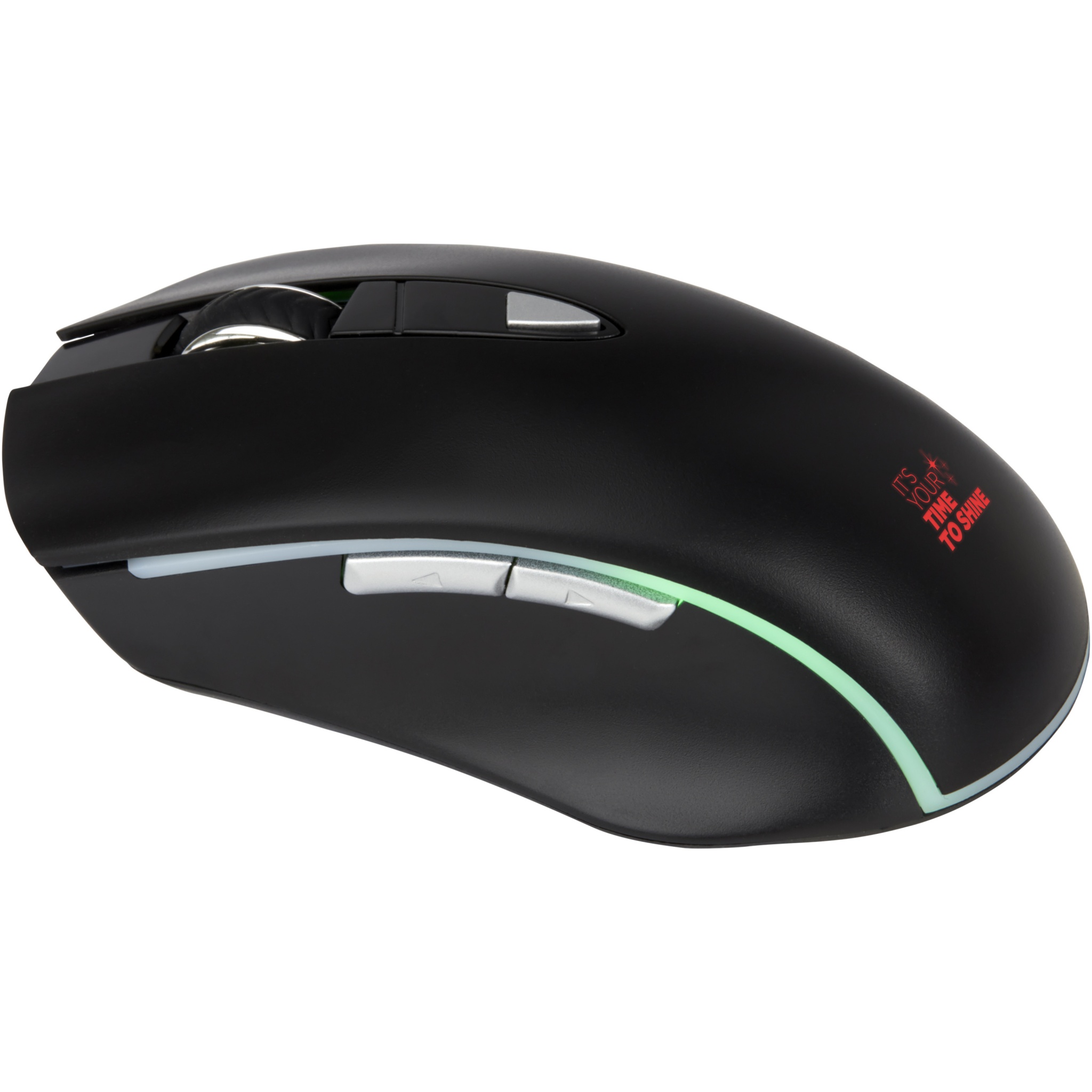 Ergonoomiline juhtmevaba hiir, mis sobib ideaalselt peopesaga. Suurepärane randmetugi pikkadeks töötundideks/mängimiseks. Hiirel on 3 DPI seadistust (800/1200/1600) kõigi tundlikkuse nõuete jaoks. Sisseehitatud 400 mAh taaslaetav liitium-aku tagab kuni 20 tundi kasutusaega LED ON-iga. Lasergraveeringuga kaunistatud logo süttib ja särab. LED-i värv muutub juhuslikult.