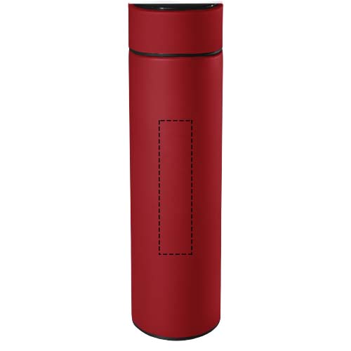 Topeltseinaga 500 ml isoleeritud roostevabast terasest pudel antibakteriaalse töötlusega ja temperatuurianduriga. Tänu "Touch & Light" süsteemile kuvatakse joogi temperatuur pudeli korgil (Celsiuse järgi). Sobib nii kuumade kui külmade jookide jaoks. Tarnitakse taaskasutatud paberist valmistatud silindrilises kinkekarbis. Suurus: Ø 47 x 225 mm. Kaasas aku: CR 2450 (3V). Akut ei saa vahetada. Saab kuvada temperatuuri 20 000 korda.