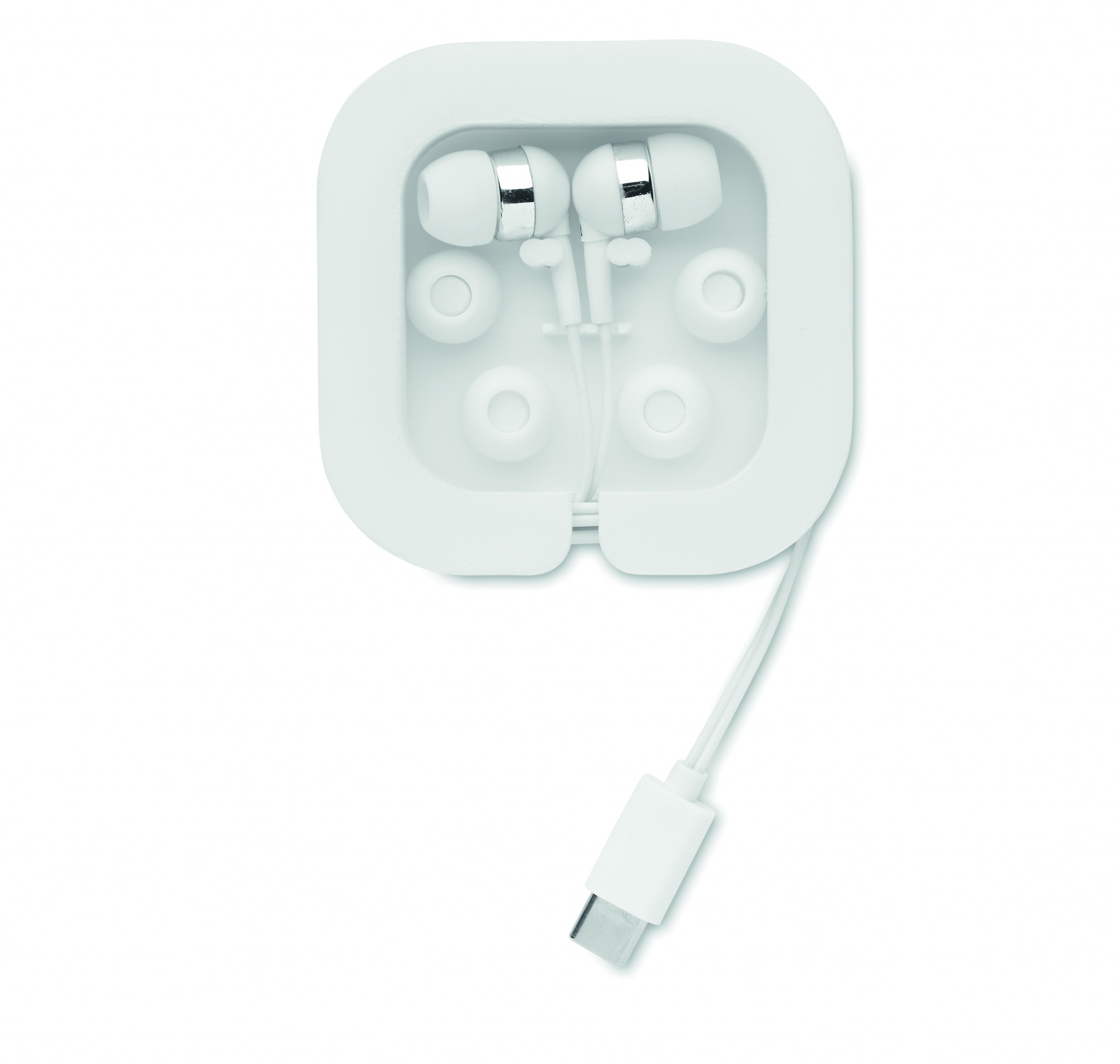 Silikoonkattega kõrvaklapid, mis isoleerivad välist müra ja parandavad helikvaliteeti. Telefoni statiivi funktsioon. Esitatakse plastkarbis, kuhu saab 120 cm kaablit korralikult hoida. Kaasas 3 erinevas suuruses silikoonist tagavarakatet. Pistik: tüüp-C.