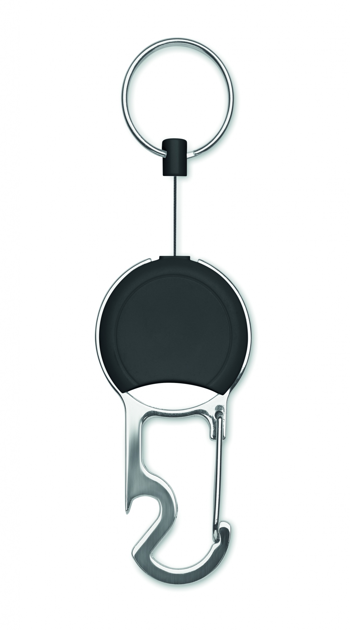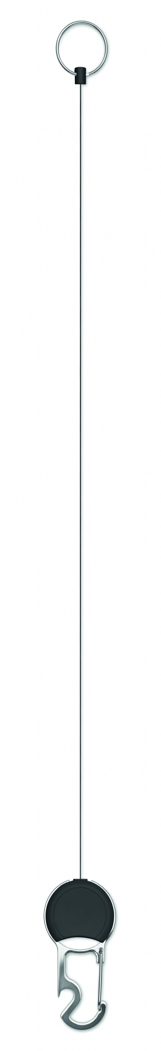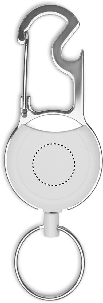 Sissetõmmatav ABS-st märgihoidja klambri, võtmehoidja ja pudeliavajaga.