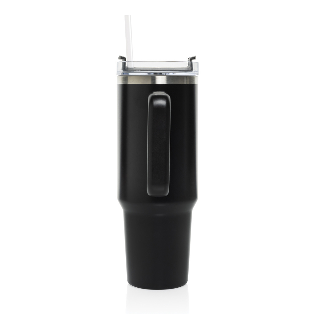 Stadley 1200 ml sangaga termoskruus. See sobib enamikesse topsihoidjatesse. Väljastpoolt valmistatud vastupidavast taaskasutatud roostevabast terasest Stadley kaheseinaline vaakumisolatsiooniga korpus hoiab joogid ideaalsel temperatuuril. Sellel on topeltfunktsiooniga pritsmekindel kaas, mis võimaldab kaasasoleva silikoonotsaga taaskasutatud terasest kõrrest juua. RCS-sertifikaadiga, 29% taaskasutatud sisaldusega ja BPA-vaba. Soovitame pesta käsitsi. Hulgipakendatud.