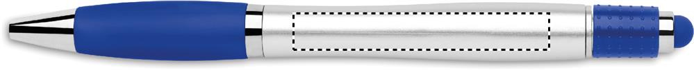Must taaskasutatud ABS-st valmistatud puutetundlik pastapliiats. Sinine tint.