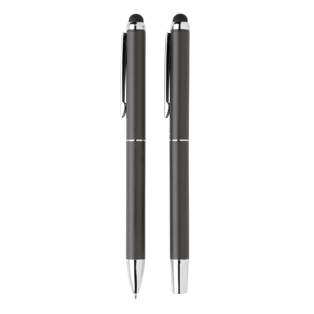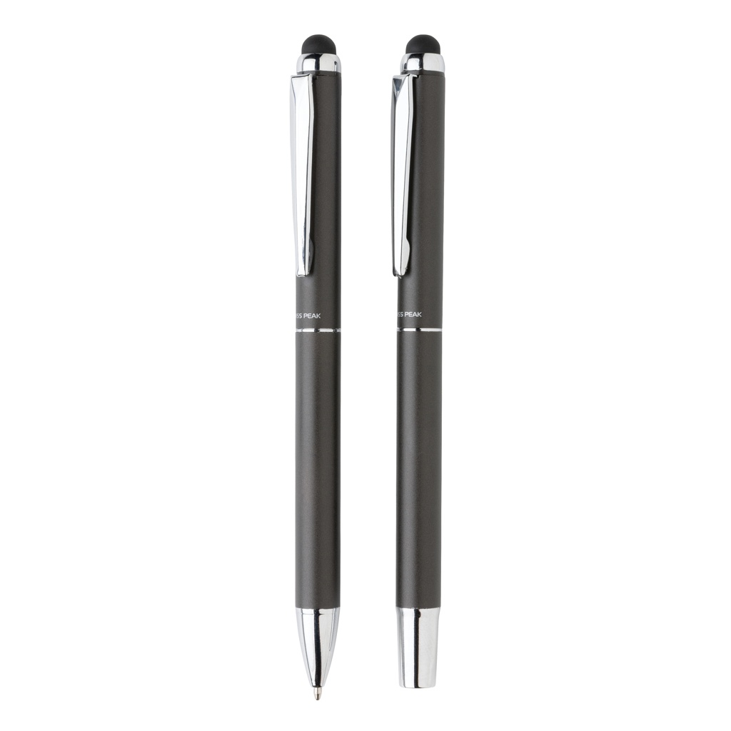 See luksuslik Swiss Peak pliiatsikomplekt sisaldab üht kuuli- ja rullpalli, et pakkuda täielikku kirjutamiskogemust. Mõlemal selles kinkekomplektis sisalduval esemel on kvaliteetne alumiiniumtoru ja kaunis matt metallist viimistlus. Iga pliiats sisaldab sinist dokumentaaltinti. Pliiatsi kirjutuspikkus on 1200 meetrit ja rullkuuli 400 meetrit. Pliiatsikomplekt on luksuslikus PU-kotis ja mustas kinkekarbis.