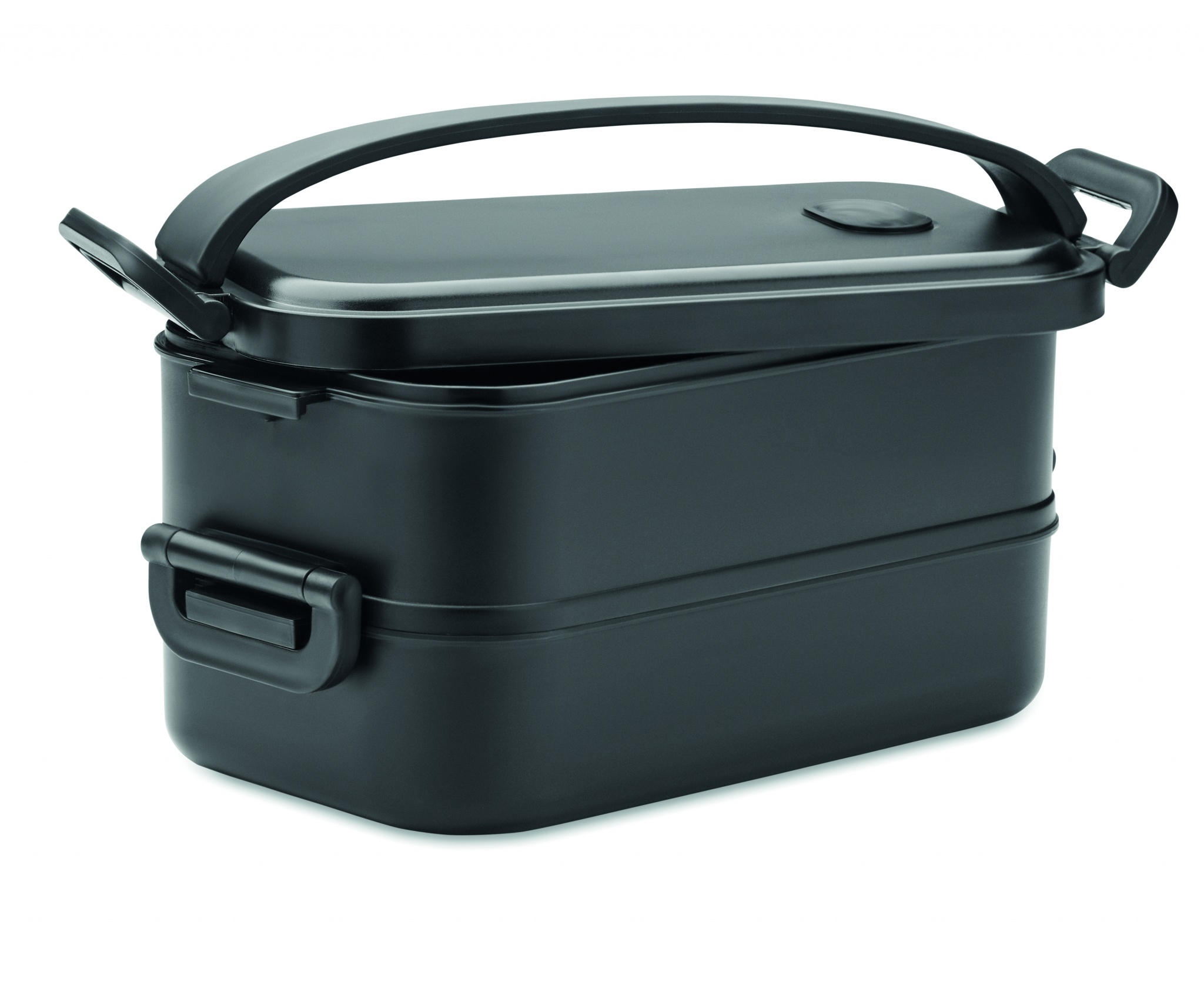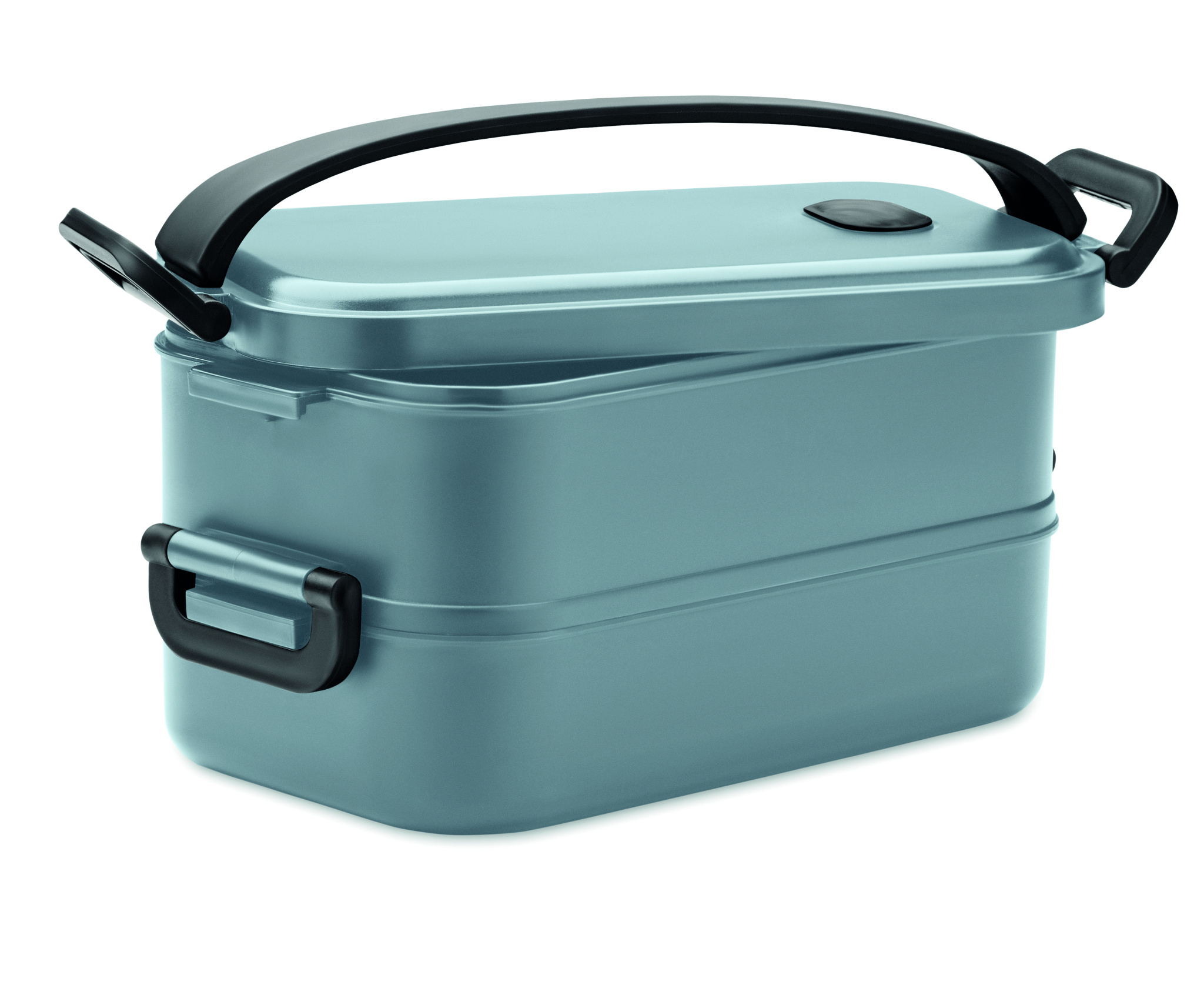 Taaskasutatud PP kahetasandiline lõunakarp koos külgpandlate ja õhukindla kaanega eemaldatava jagajaga. Mahutavus: 800 ml (2x).