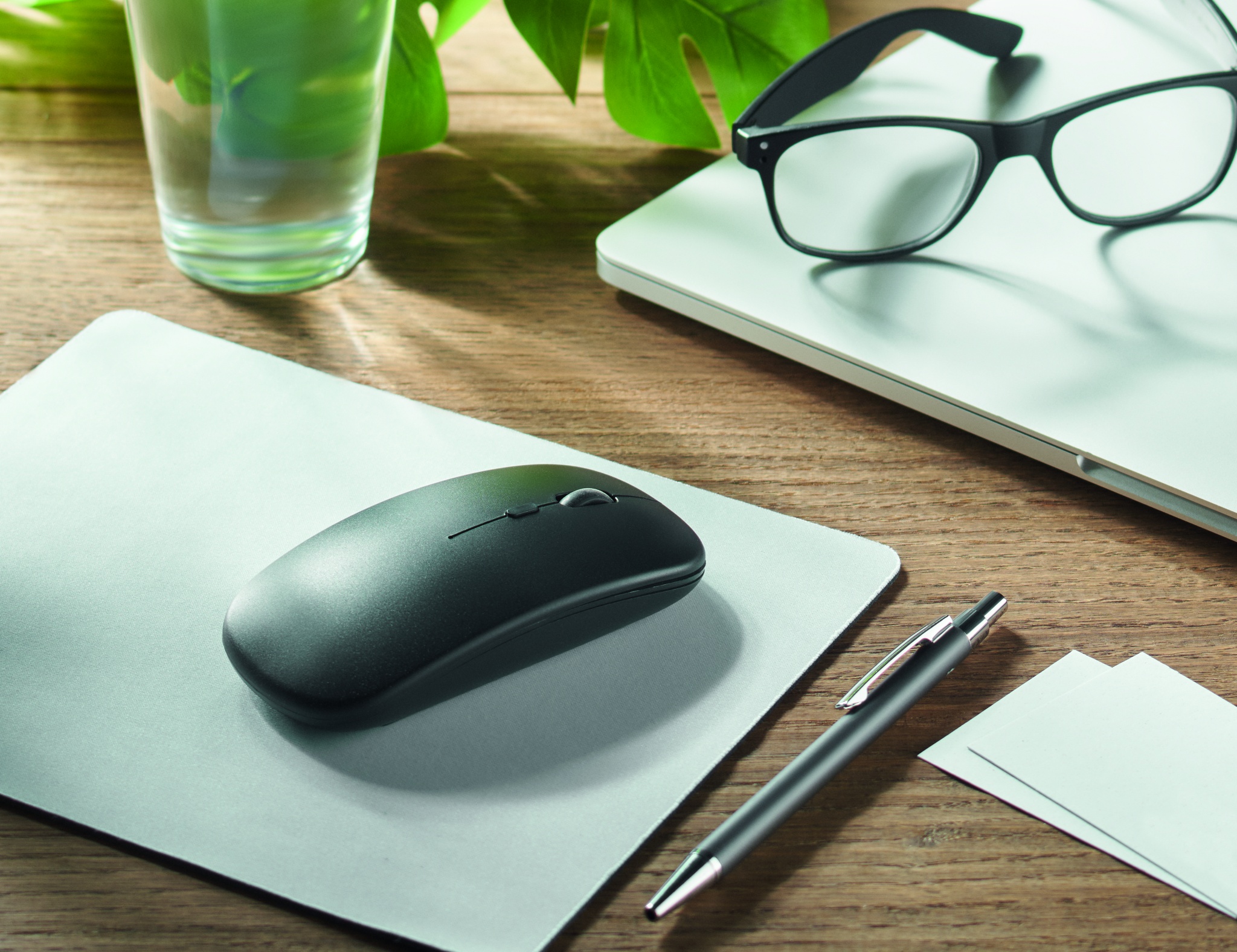 Traadita optiline hiir taaskasutatud ABS-st ja USB-taaslaetav 500 mAh aku.