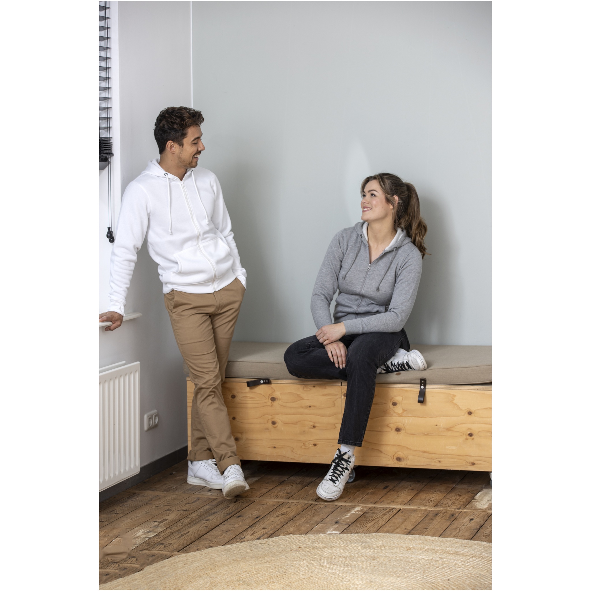 Theron naiste tõmblukuga kapuuts – kus stiil kohtub täiuslikus harmoonias mugavusega. See kapuuts on klassikalise disaini tõeline kehastus. Lisaks võimaldavad interjööri kohandatud kaubamärgivalikud kapuutsi sees isikupärastatud kaubamärki või kohandamist. Kängurutasku ühendab mugavuse kaasaegse esteetikaga. Lame kootud sooniku alläär ja kätised tagavad kindla istuvuse, samal ajal kui harjatud sisemus maksimeerib pehmust. 240 g/m² puuvilla ja polüestri segu tõotab soojust ja vastupidavust. Suurendage oma riidekappi Theroni täistõmblukuga kapuutsiga. See kapuuts on kujundatud liibuva kujuga naiseliku välimuse jaoks.
