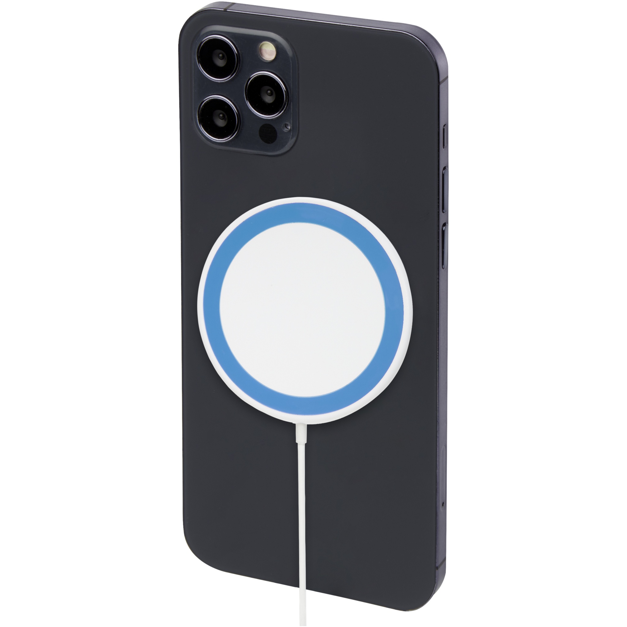 Juhtmeta magnetiline laadimispadi, mille saab seadme laadimiseks kinnitada telefoni (iPhone 12/iPhone 12 Pro /iPhone 12 Pro MAX) tagaküljele. 10 W juhtmevaba laadija ühildub kõigi Qi seadmetega (iPhone 8 või uuem ja Android seadmed, mis toetavad juhtmevaba laadimist) ning teiste telefonide puhul saab seda kasutada tavalise juhtmevaba laadimisalusena. Kaasas täiendav kahekordse teibiga metallrõngas, mis muudab eseme ühilduvaks kõigi teiste nutitelefonidega, millel on juhtmevaba laadimise võimalus. Tarnitakse kinkekarbis koos kasutusjuhendiga.
