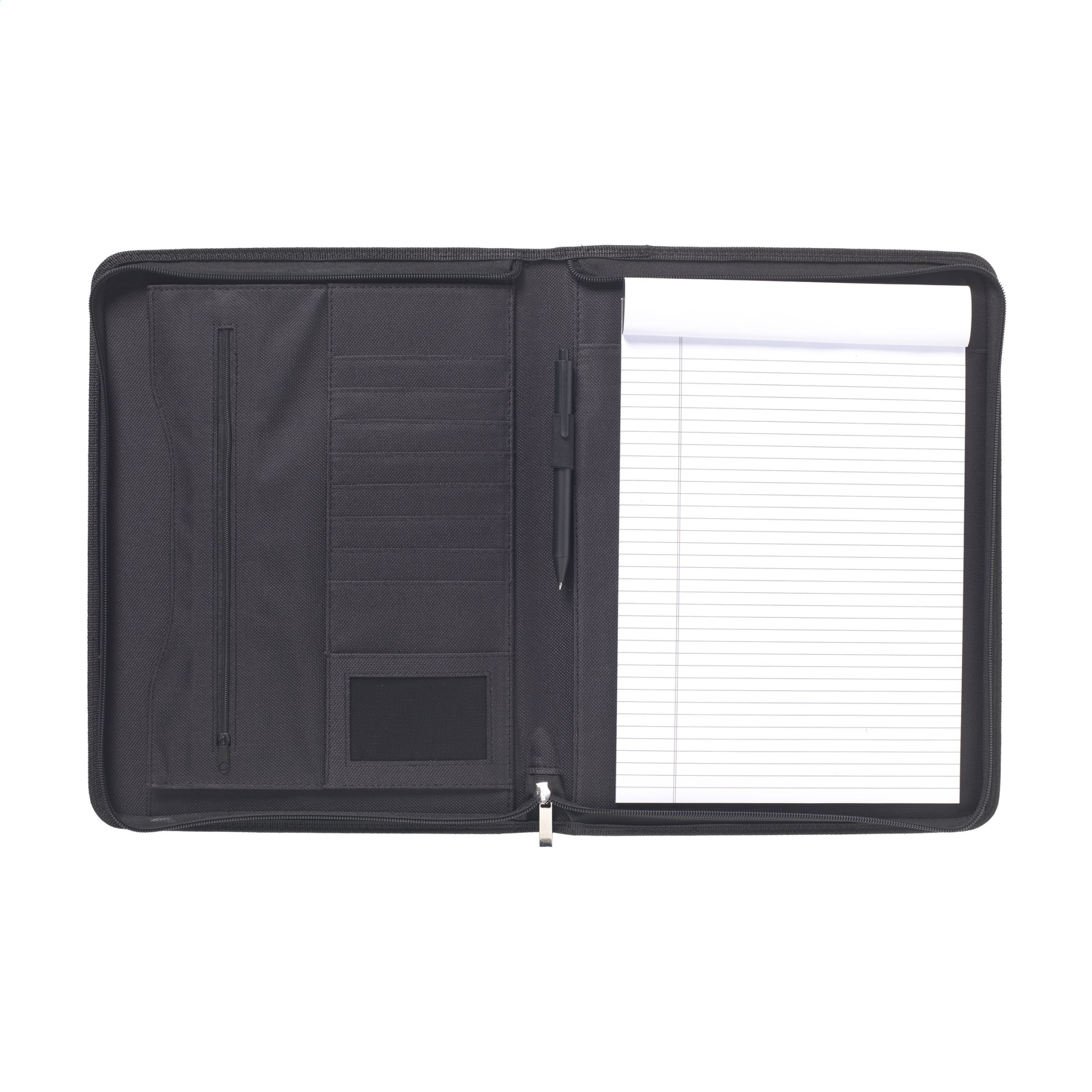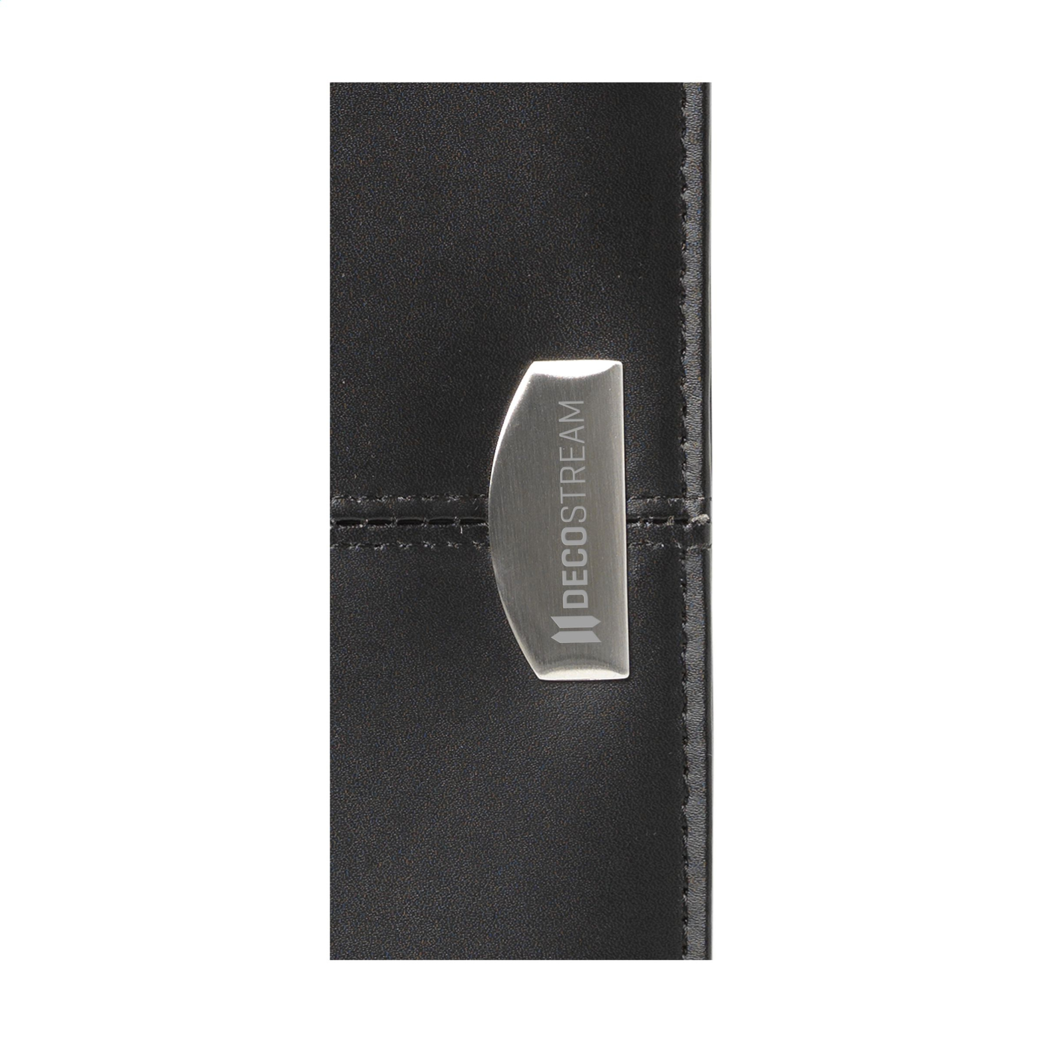 Peenest liimitud nahast A4 formaadis konverentsi-/dokumentide kaust. Mitme tasku, visiitkaardi pesade ja tõmblukuga. Sealhulgas kirjutusplokk ja pastapliiats. Iga ese on eraldi karbis.