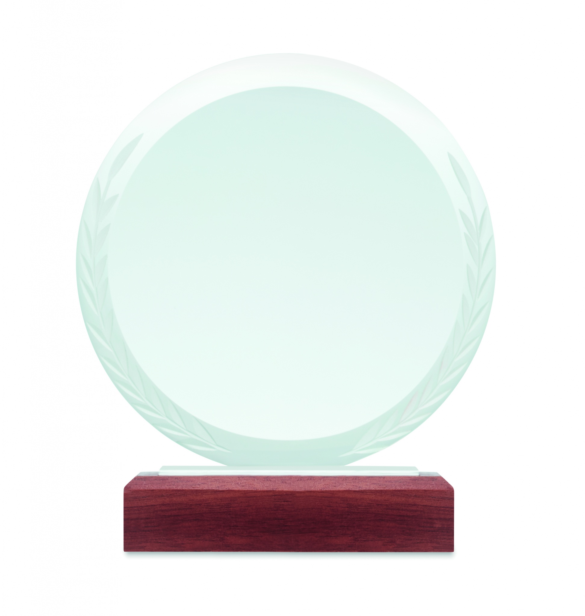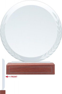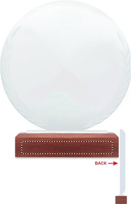 Ümmargune kristallauhind või mälestustahvel pöögipuidust alusel kinkekarbis.