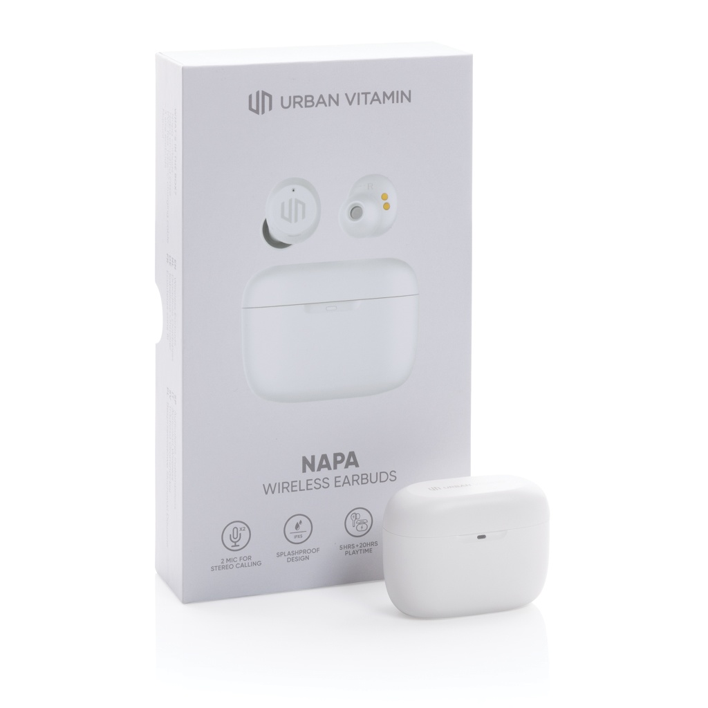Kui avate ümbrise ja paned kõrvaklapid sisse, tabab teid intensiivne bass. Kuidas saab nii kompaktne ja kaasaskantav ese pakkuda nii rikkalikku ja sügavat heli? Kõrvaklapid ja kaasaskantav laadimisümbris on loodud nii, et neid saaks kaasas kanda ükskõik kuhu lähete ja mahuvad hõlpsalt taskusse. Mugavatel kõrvaklappidel on kuni 5 tundi kuulamisaega ja laadimisümbris võimaldab kuni 20 tundi taasesitust. Piisab, et hoida teid terve päeva! Kõne vastuvõtmisel vastake sellele lihtsalt stereoheliga tänu kahele integreeritud mikrofonile. Integreeritud puutetundliku juhtimise funktsiooniga peate kristallselge kvaliteediga vastamiseks vaid kõrvaklappi puudutama. IPX 5 reiting muudab kõrvaklapid ilmastiku-, higi- ja pritsmekindlaks, nii et pole vaja neid õue viia. Urban Vitamin tooted on valmistatud ilma PVC-ta ja pakendatud plastikpakendisse.