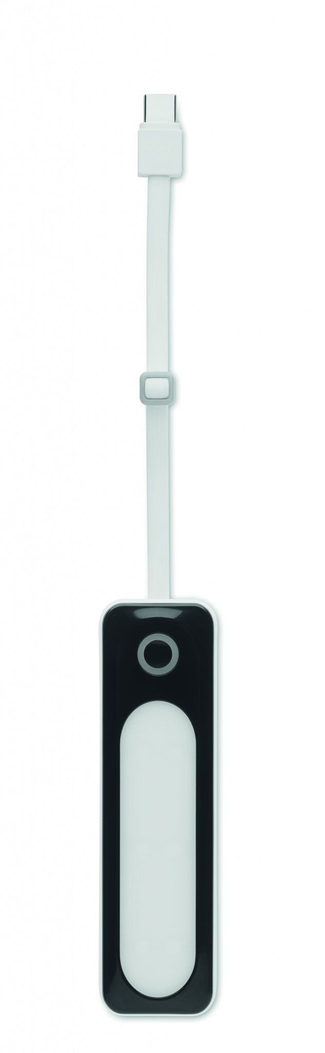 Varavirtalähde 5000 mAh ABS-kotelossa. Lähtövirta DC5V/2A. Sisältää 4 valoasetusta (6 COB led) ja integroidun USB-kaapelin C-tyypin pistokkeella.