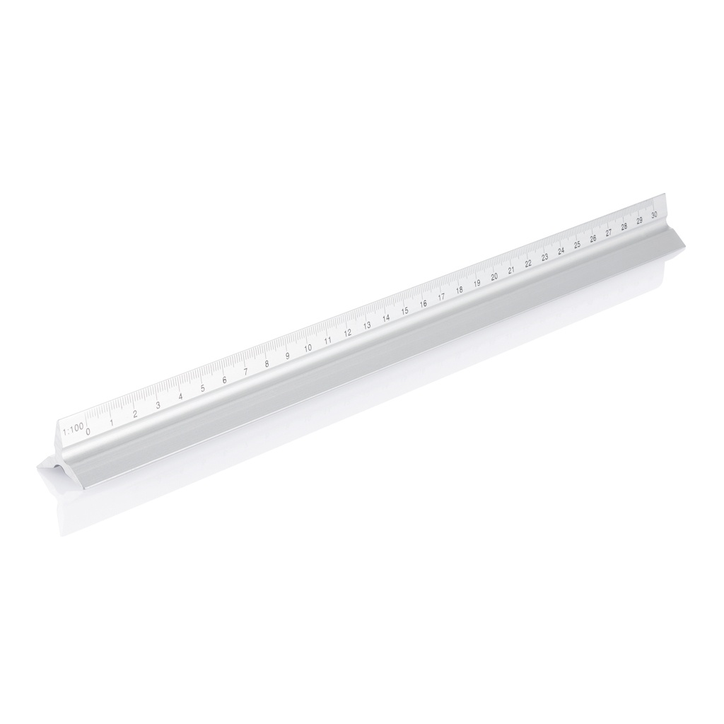 Alumiininen viivoitin, jossa 5 eri asteikkoa (1:20, 1:25, 1:50, 1:75, 1:100), tyhjään sivuun voi painattaa oman mainostekstin.