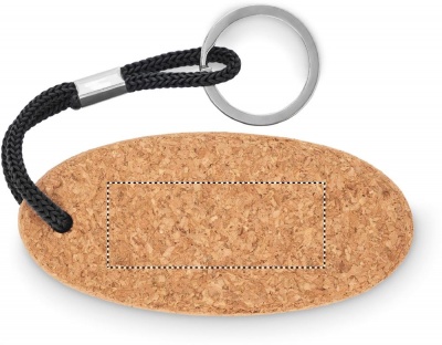 Kelluva korkkiavaimenperä punotulla lenkillä. Korkki on luonnonmateriaali, strukturaalinen laatu ja pinnan huokoisuus voi aiheuttaa eroavaisuuksia tuotteissa painatuksen jälkeen.