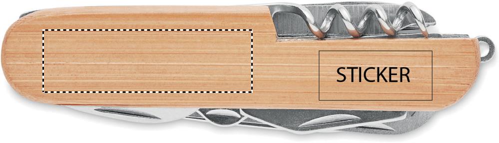 Ruostumattomasta teräksestä valmistettu linkkuveitsi, bambu kuorella ja 9 erillaisella toiminnolla. Luonnollisen materiaalin (bambu) vuoksi, tuotteiden värissä/ koossa saattaa olla erinäisyyksiä ja tämä voi vaikuttaa painatuksen lopputulokseen.