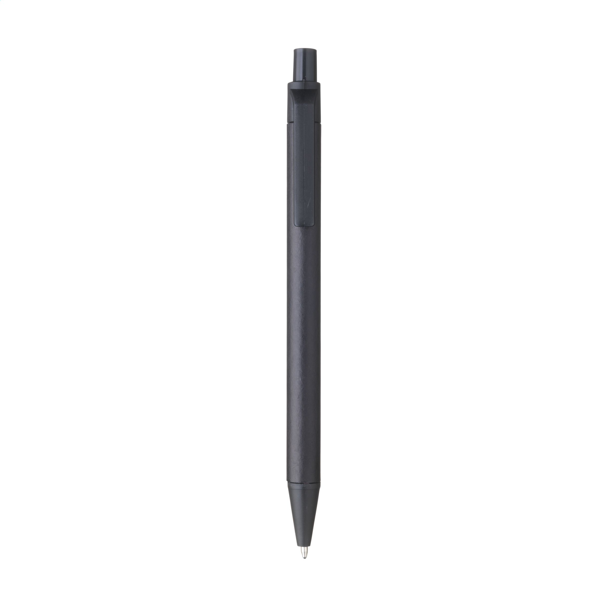 Vau! Bblue muste kuulakärkikynä, jonka piippu on valmistettu kierrätyspaperista. Klipsi, painike ja kärki on valmistettu biohajoavasta PLA:sta.