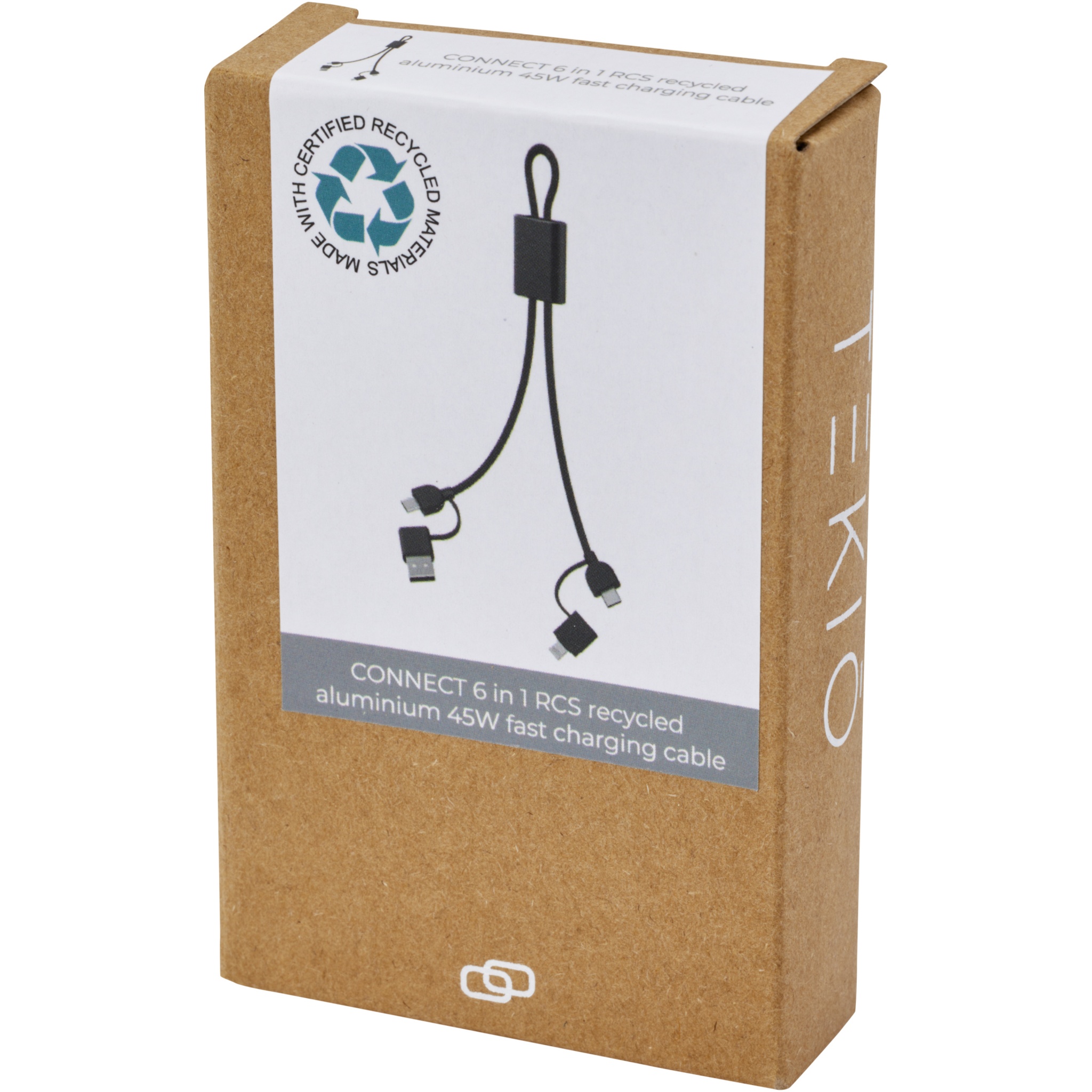 Tämä 45 W:n Connect-pikalataus- ja tiedonsiirtokaapeli tyylikkäällä kierrätetystä alumiinista valmistetulla kotelolla ja RPET-johdolla tarjoaa useita latausratkaisuja: Type-C- ja USB-A-tulo sekä Type-C- / iOS- / Micro-USB-lähtö. Kaikkien näiden liittimien ansiosta voit ladata tällä kaapelilla useimpia älypuhelimia, kameroita, virtapankkeja, kuulokkeita ja jopa Type-C-yhteensopivia kannettavia tietokoneita (jopa 45 W). Apple CarPlay ja Android Auto yhteensopiva. Kaapelin pituus on 25 cm ja se toimitetaan 100-prosenttisesti kierrätetyssä voimapaperilaatikossa.