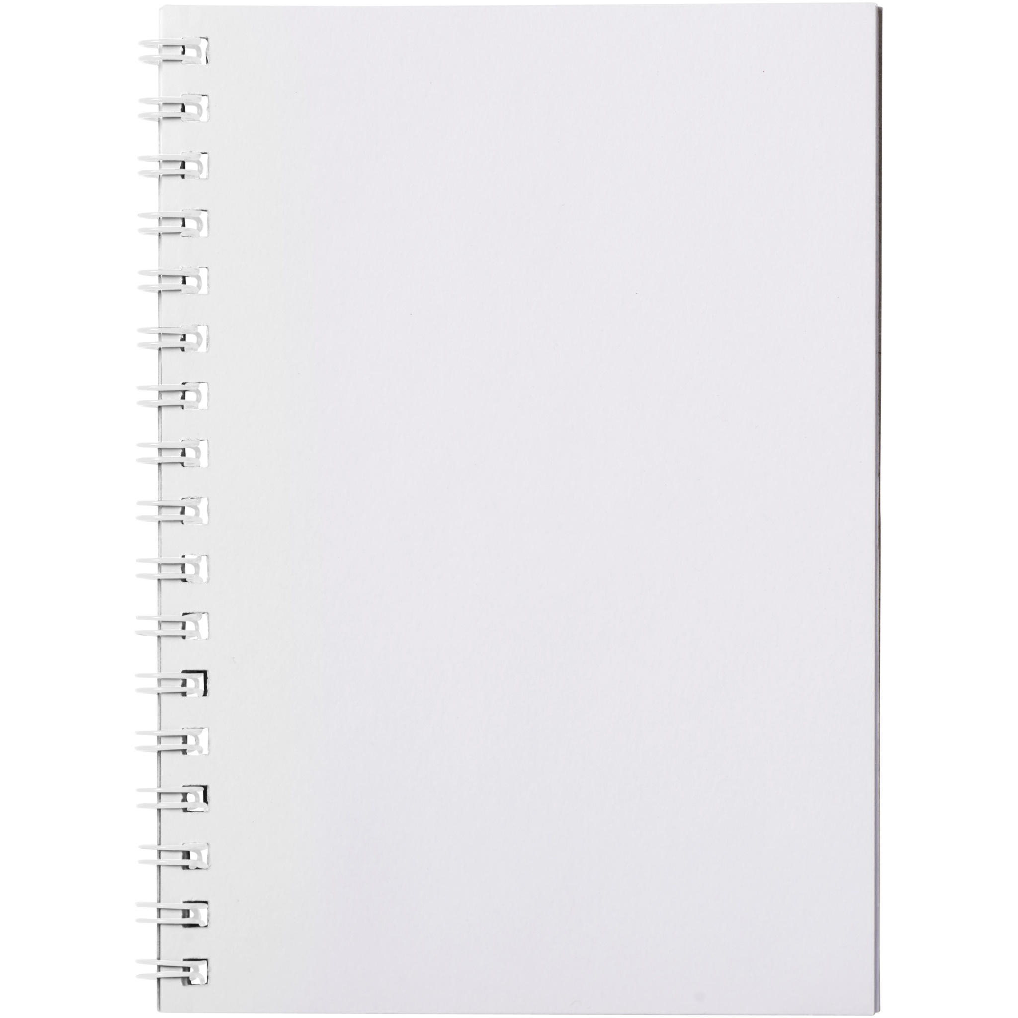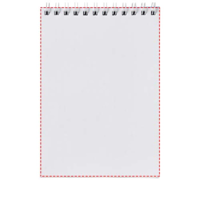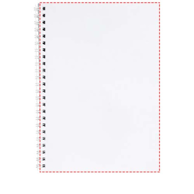 Desk-Mate®-spiraalimuistikirja, A6. Sisältää 50 kpl tyhjiä paperiarkkeja, 80 g/m2, kiiltävä kartonkikansi (250 g/m2) ja 450 micronin läpinäkyvä polypropeenikansi edessä. Musta tai valkoinen kierre. Voit räätälöidä muistikirjan täysin. Valitse esimerkiksi viivoitetut, ruudulliset tai blankot sivut - kaikki on mahdollista!