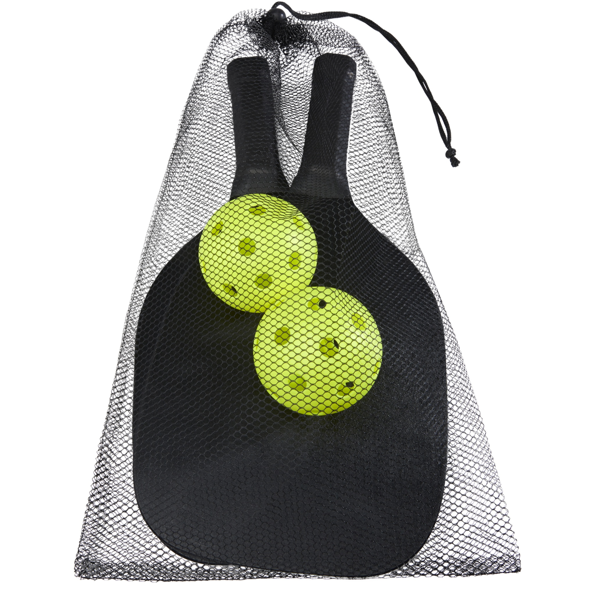 Tämä poppelipuusta valmistettu mailasetti tarjoaa kahdelle paljon hauskaa liikuntaa rannalla, puistossa tai puutarhassa. Mailat ovat kooltaan 40 x 20 x 0,7 cm ja ne on maalattu mustaksi, mikä tarjoaa suuren pinnan logon painatusta varten. Kahvat on päällystetty PU-teipillä, joka antaa maksimaalisen pidon intensiivisen pelin aikana. Sarjan täydentää kaksi PP-materiaalista valmistettua palloa, jotka on pakattu 45 x 26 cm:n kokoiseen verkkokankaiseen polyesteripussiin.