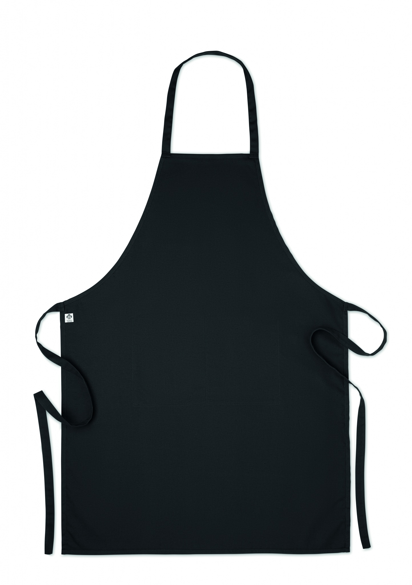 200 gr/m² orgaanisesta puuvillasta valmistettu esiliina, 2 etutaskulla.