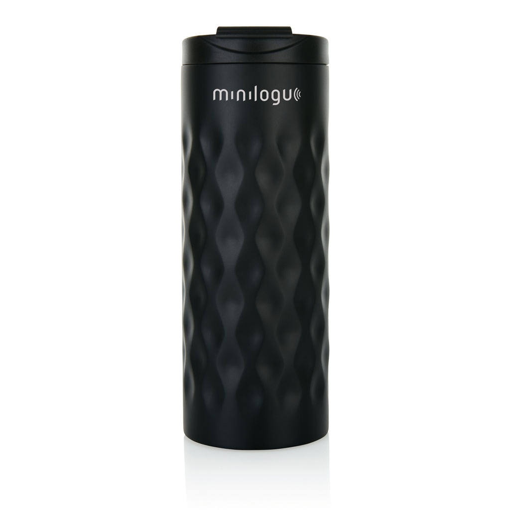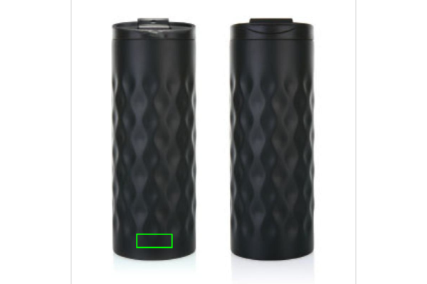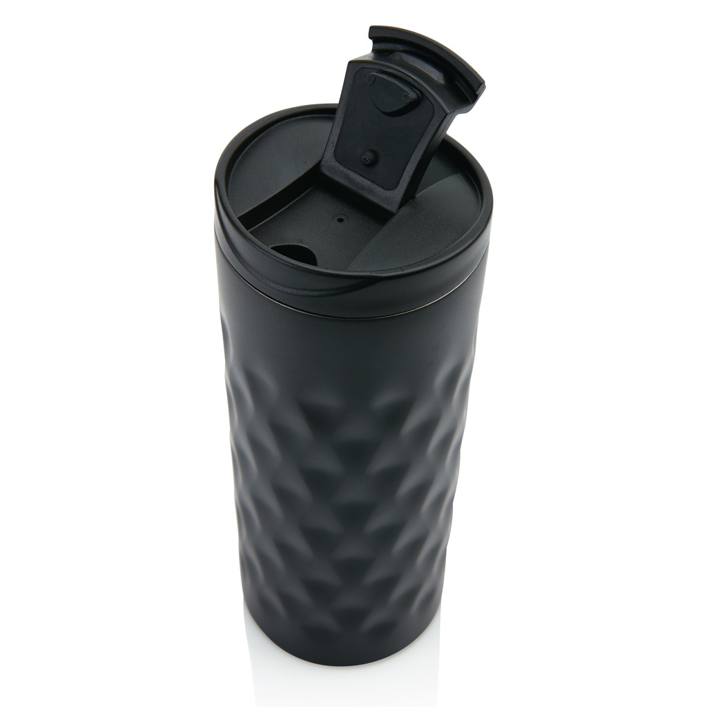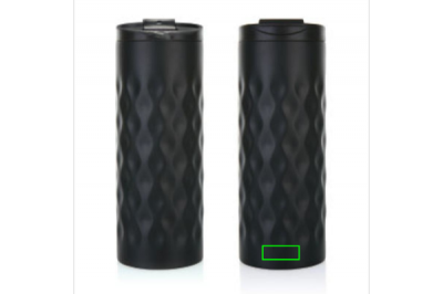Juomamuki ruostumatonta terästä, kaksoisseinämä. Koristeltu trendikkäällä geometrisellä kuviolla. Kapasiteetti 350 ml.