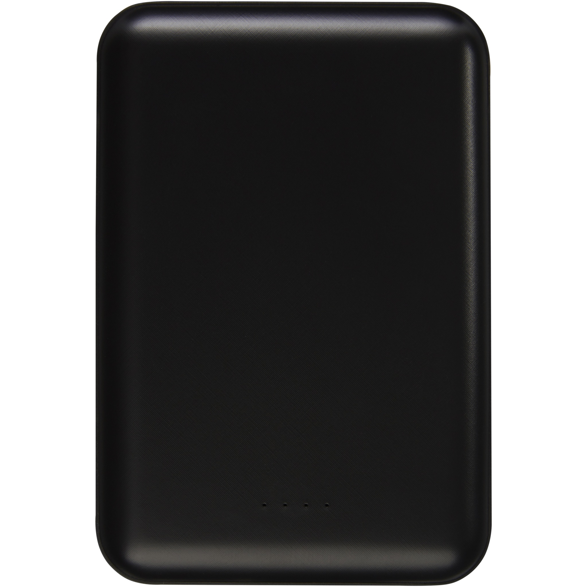 Litteä ja kestävä varavirtalähde 5000 mAh:n polymeeriakulla. Etupaneeli voidaan laserkaivertaa jolloin logomerkintä valaistuu, kun varavirtalähde kytketään päälle tai sitä käytetään. Lähtö: 5 V / 2 A. Tulo: 5 V / 2 A. Lisävarustekaapelia ei toimiteta ympäristön säästämisen vuoksi.