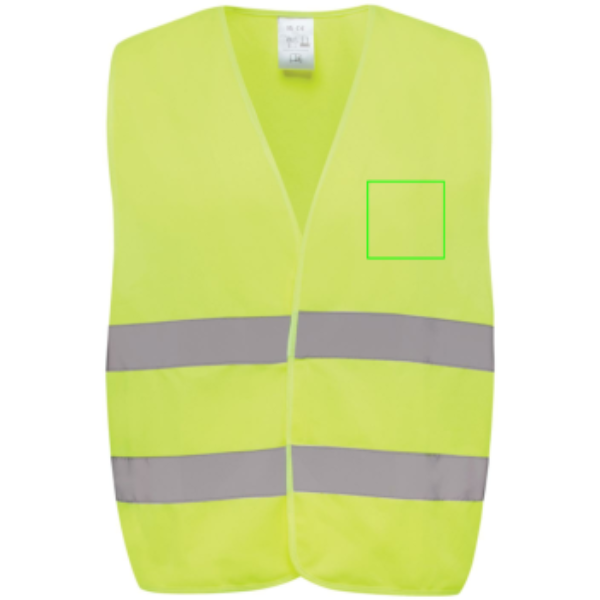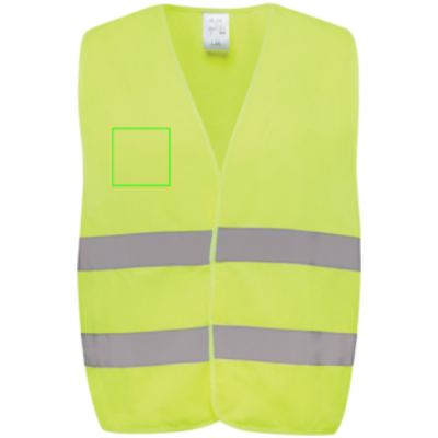 Unisex luokan 2 korkean näkyvyyden varoitusliivi, joka on suunniteltu 164-198 cm pituisille henkilöille. Tässä liivissä on runsaasti tilaa suurille merkkauksille sekä edessä että takana, joten ne sopivat erinomaisesti ammattikäyttöön, kun näkyvyys on ensiarvoisen tärkeää. Liivissä on fluoresoiva tausta yhdistettynä heijastinnauhaan, mikä takaa EN ISO 20471:2013+A1:2016 -standardin noudattamisen. Lisäksi vaatteet on merkitty CE-symbolilla, joka vahvistaa niiden noudattavan EU-asetusta 2016/425/EU ja luokittelee ne II-kategorian henkilösuojaimiksi. Valmistettu GRS-sertifioidusta kierrätetystä PET:stä. Kierrätetyn materiaalin kokonaismäärä: 67% tuotteen kokonaispainosta. GRS-sertifiointi takaa täysin sertifioidun kierrätysmateriaalien toimitusketjun.