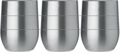Ruostumattomasta teräksestä valmistettu 750 ml pullo ja 2 x 350 ml mukia, tuotteet ovat vuoto vapaita.