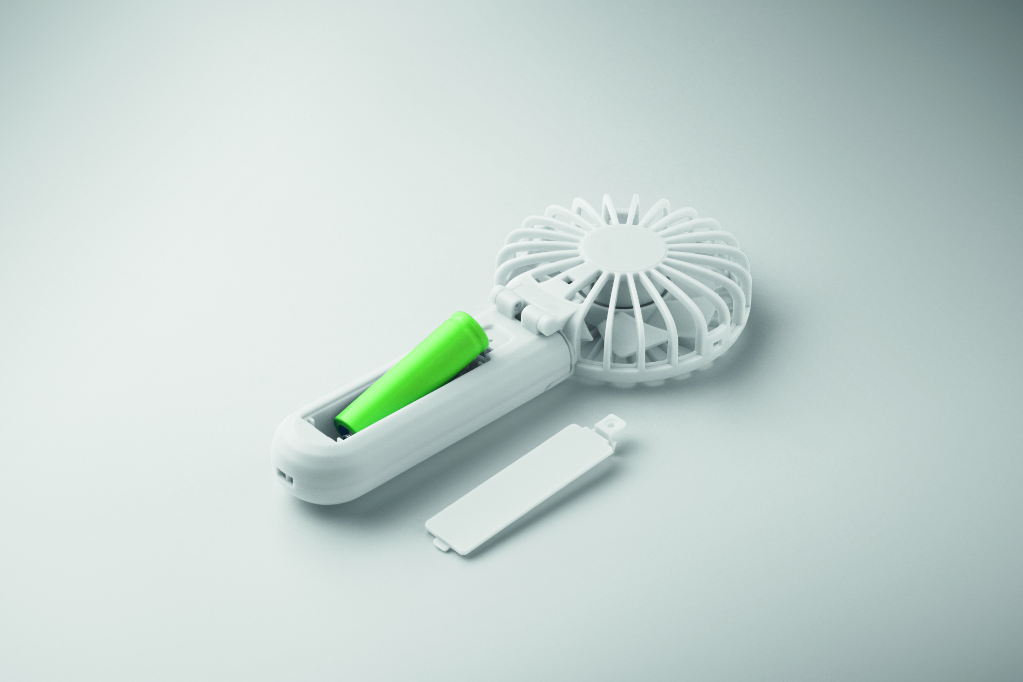 Kannettava, kokoontaitettava ABS-tuuletin, jossa on 3 nopeusasetusta. Voidaan käyttää kädessä pidettävänä tai pöytätuulettimena. Sisältää yhden vaihdettavan ja ladattavan 14500 litiumpariston, 500 mAh