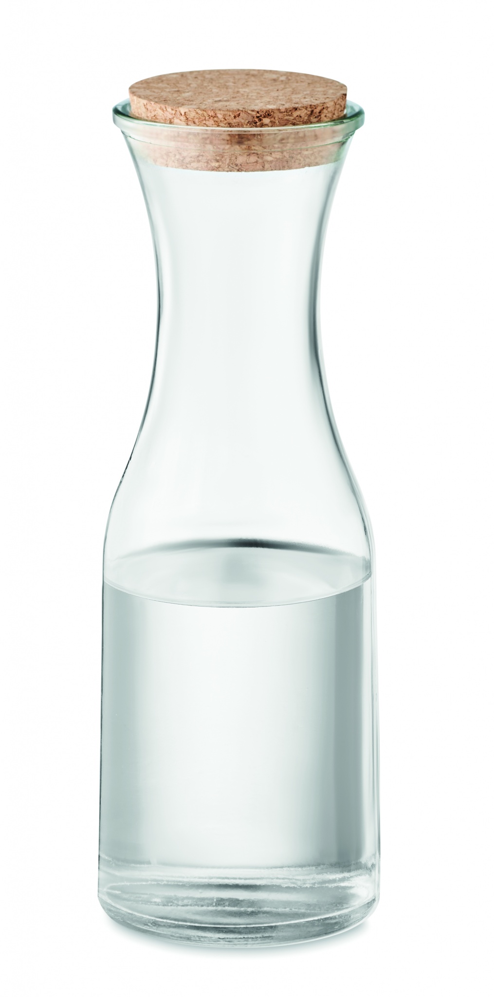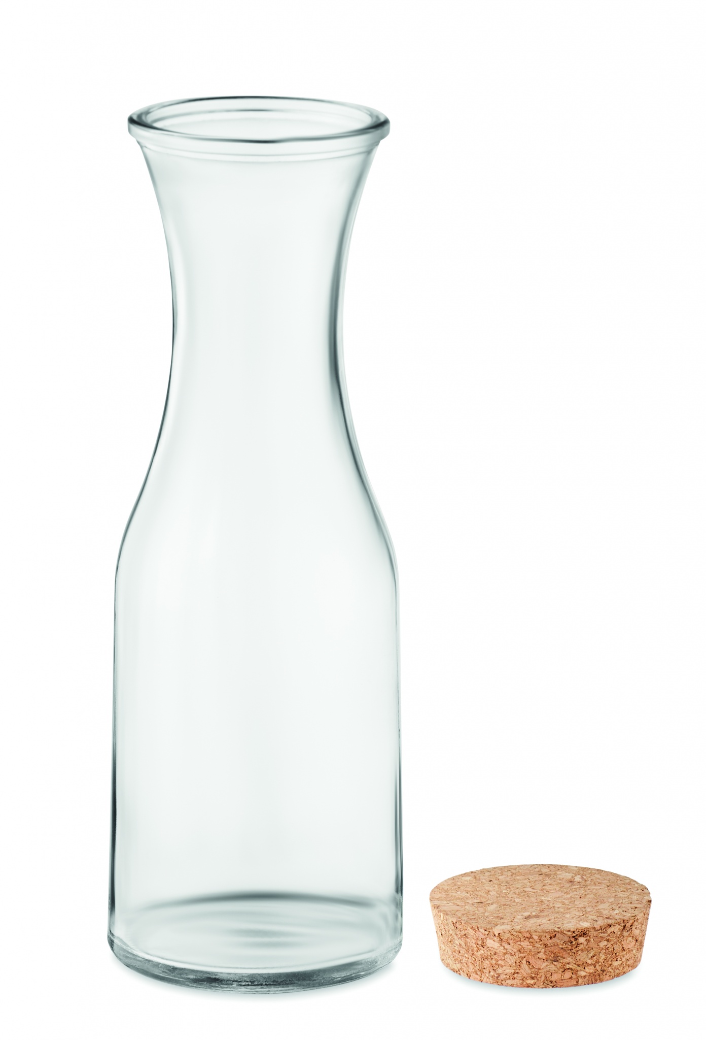 Kierrätetystä lasista valmistettu litran karahvi korkki kannella.
