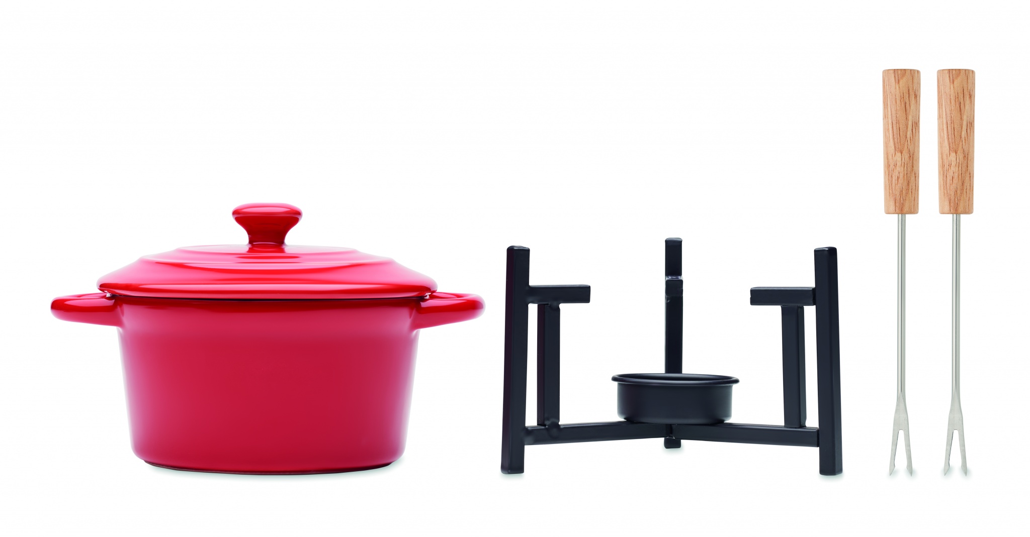 Pieni keraaminen juustofonduesetti kahdelle. Sisältää 2 metallihaarukkaa puukahvoilla. Ei sisällä lämpökynttilää. Tilavuus: 300 ml.