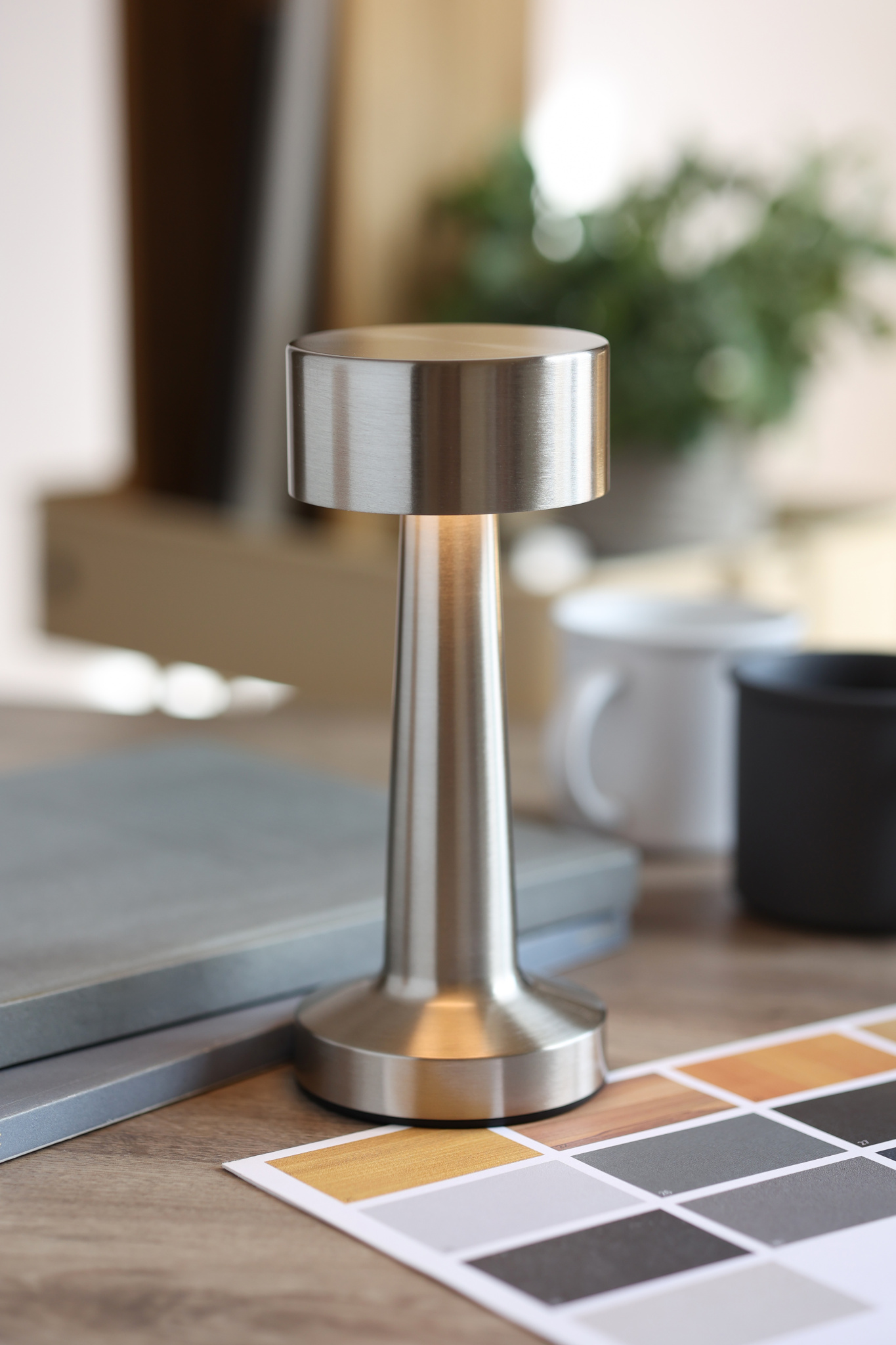 Rautainen pöytävalaisin 12 LED-valolla, portaaton himmennys, 3 valotilaa ja kosketusohjaus. USB-portti ja ladattava Li-Ion 1200 mAh akku. 6 tunnin työaika täyteen latauksen jälkeen. Sisältää latauskaapelin.
