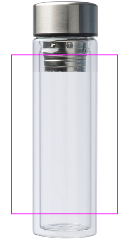 Borosilikaattilasista valmistettu lämpöpullo, jossa digitaalinen lämpötilanäyttö kannessa, seula ja tilavuus 400 ml. Logosi painetaan lasille.