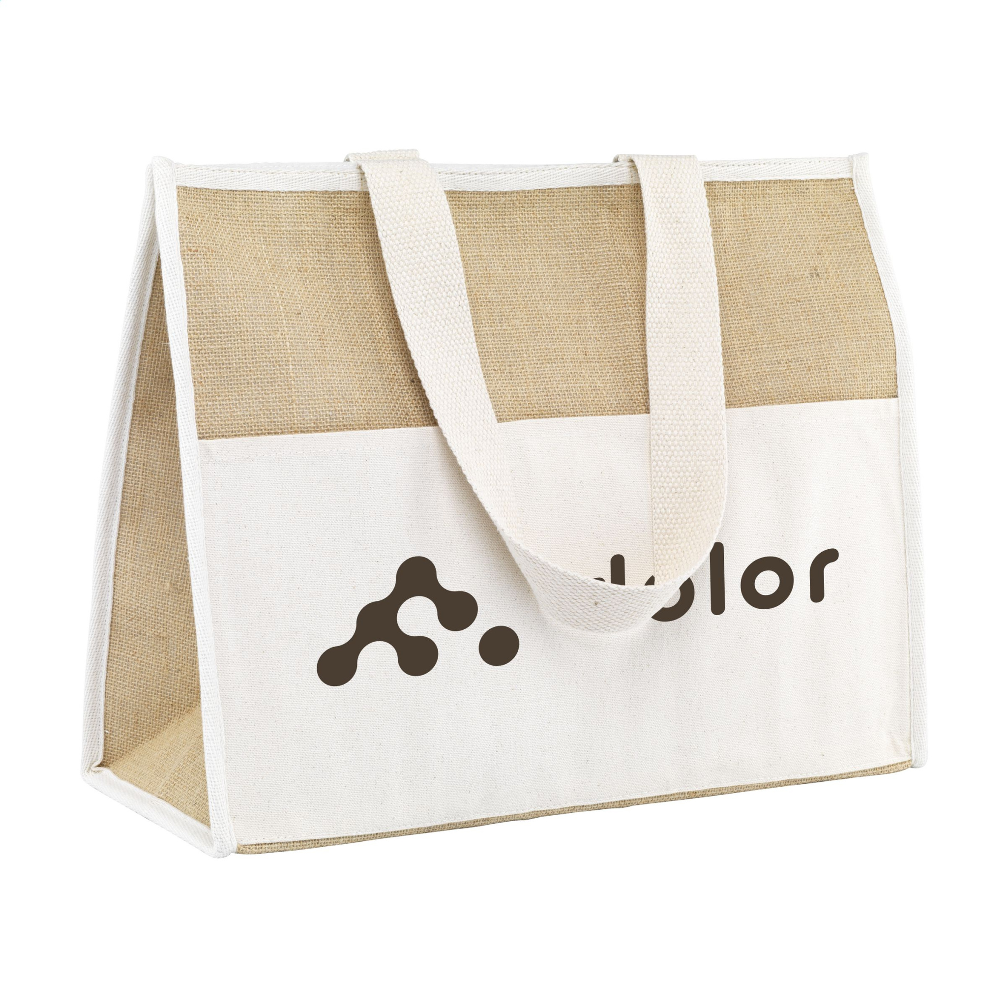 Vau! Tilava ostos-/kylmälaukku, jossa eristys, alumiininen sisäpuoli ja tarrakiinnitys. Ihanteellinen pakastetuotteiden kuljetukseen ja myös ruokien ja juomien pitämiseen viileinä päivän aikana. Toimitetaan luonnollisissa väreissä materiaaliyhdistelmällä tukevaa juuttia ja puuvillaa. Pitkät, kudotut kahvat. Velcro-etutasku tarjoaa lisää säilytystilaa. Sopii ostoskassiksi, kylmälaukuksi tai rantakassiksi. Kapasiteetti n. 28 litraa.
