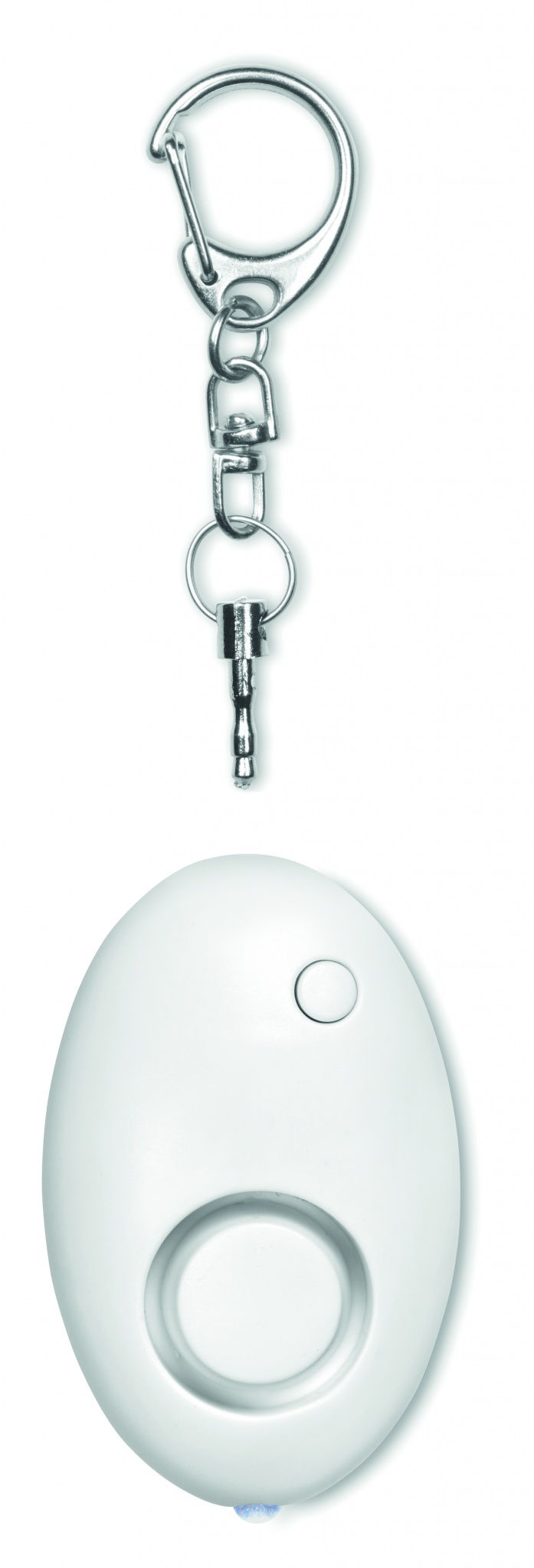 ABS- muovinen minikokoinen hälytin led valolla, aktivoi tuote vetämällä avainrengasta. Sisältää 3 AG13 patteria.