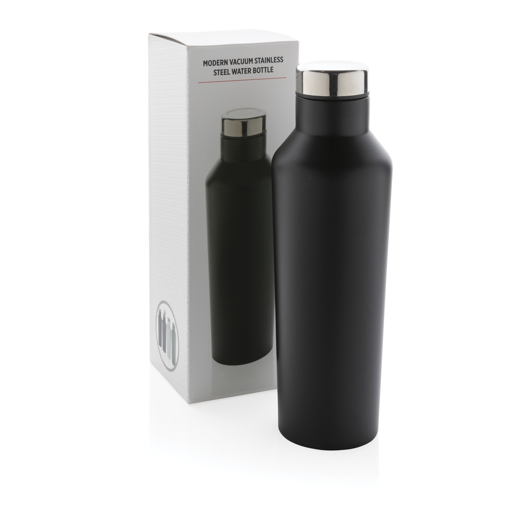 Moderni tyhjiövesipullo ruostumattomasta teräksestä, musta