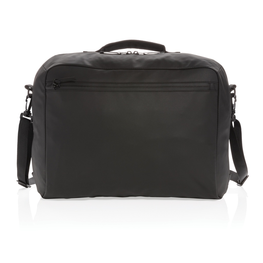 Ole vaivatta tyylikäs tämän kokonaan mustan PU-laptoplaukun kanssa. Laukussa on lokero kaikille tärkeille tavaroillesi sekä tasku 15,6 ” kannettavalle. PVC-vapaa.